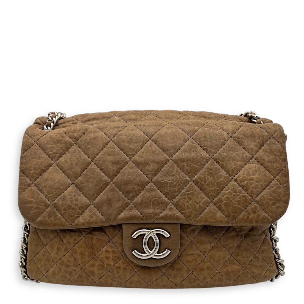 CC Shoulder Bag Brown in Calfskin, Silver hardware