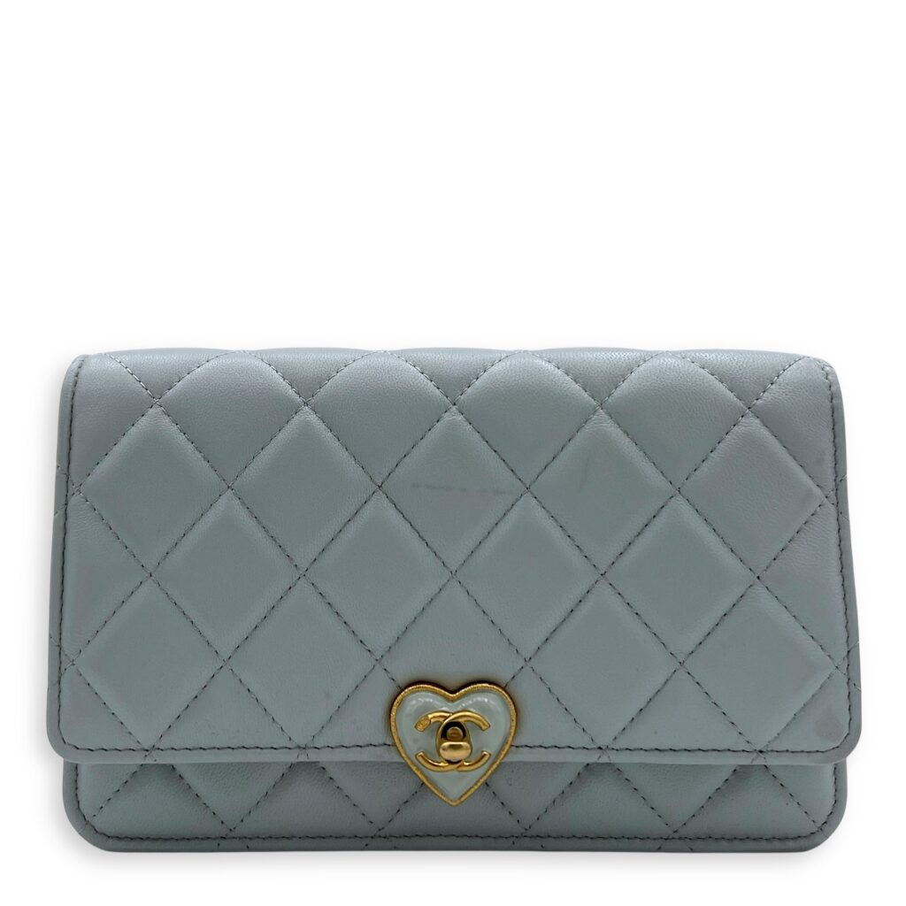 CC Wallet On Chain Blue in Lambskin, Gold hardware