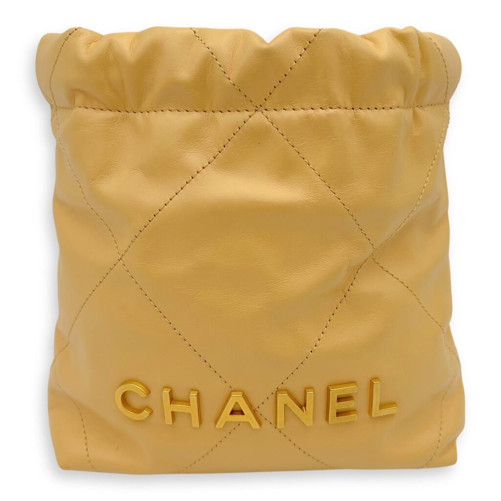 22 Tote Shoulder Bag Mini Beige in Lambskin, Gold hardware