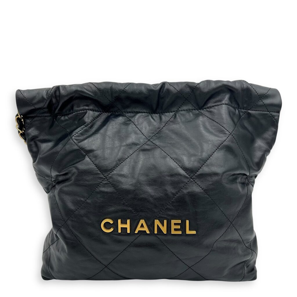 22 Tote Shoulder Bag Black in Calfskin, Gold hardware