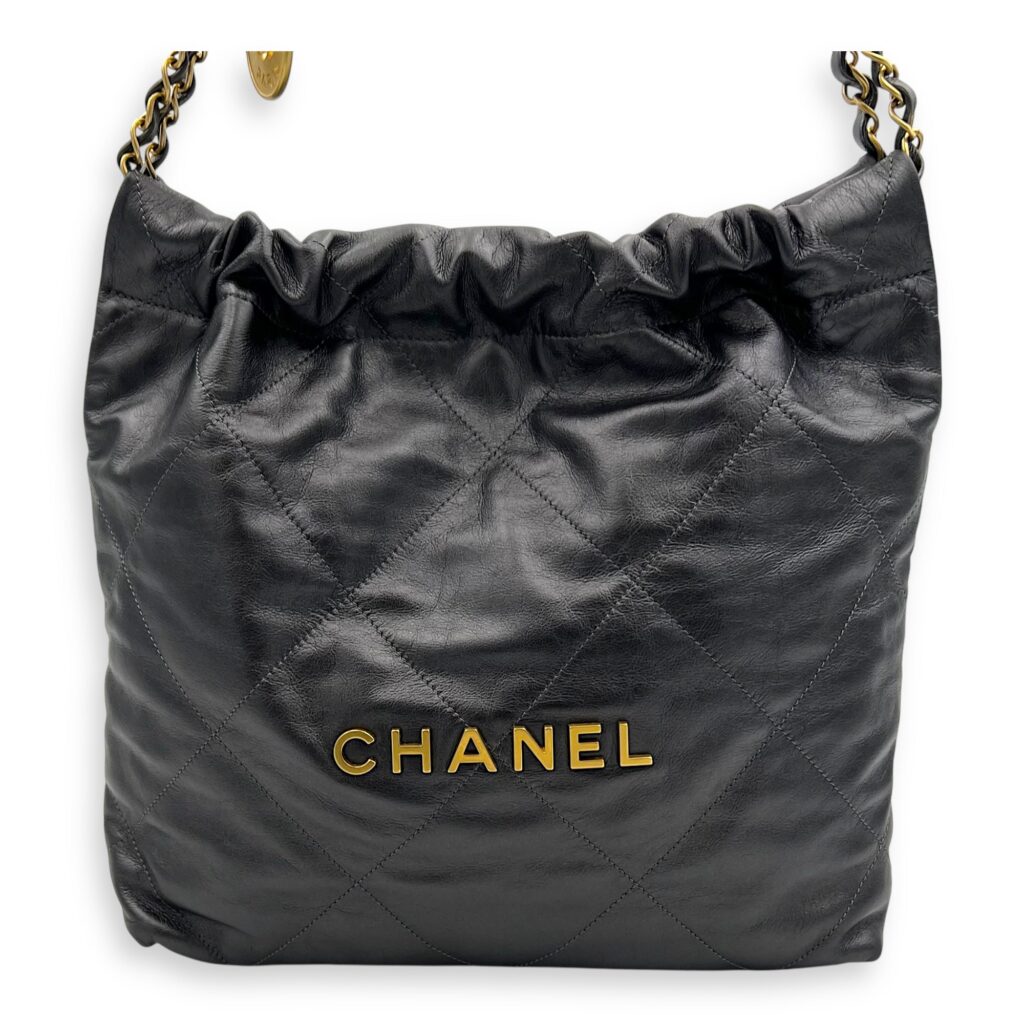22 Tote Shoulder Bag Small Black in Calfskin, Gold hardware