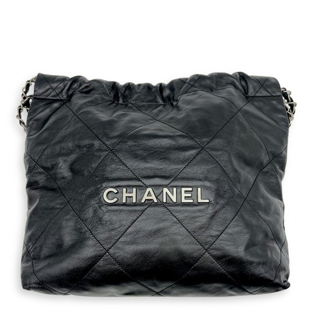 22 Tote Shoulder Bag Small Black in Calfskin, Silver hardware