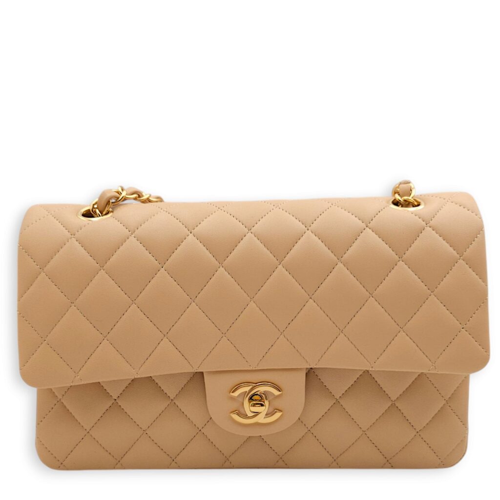 Classic (DF) Medium Beige Shoulder Bag in Lambskin, Gold hardware