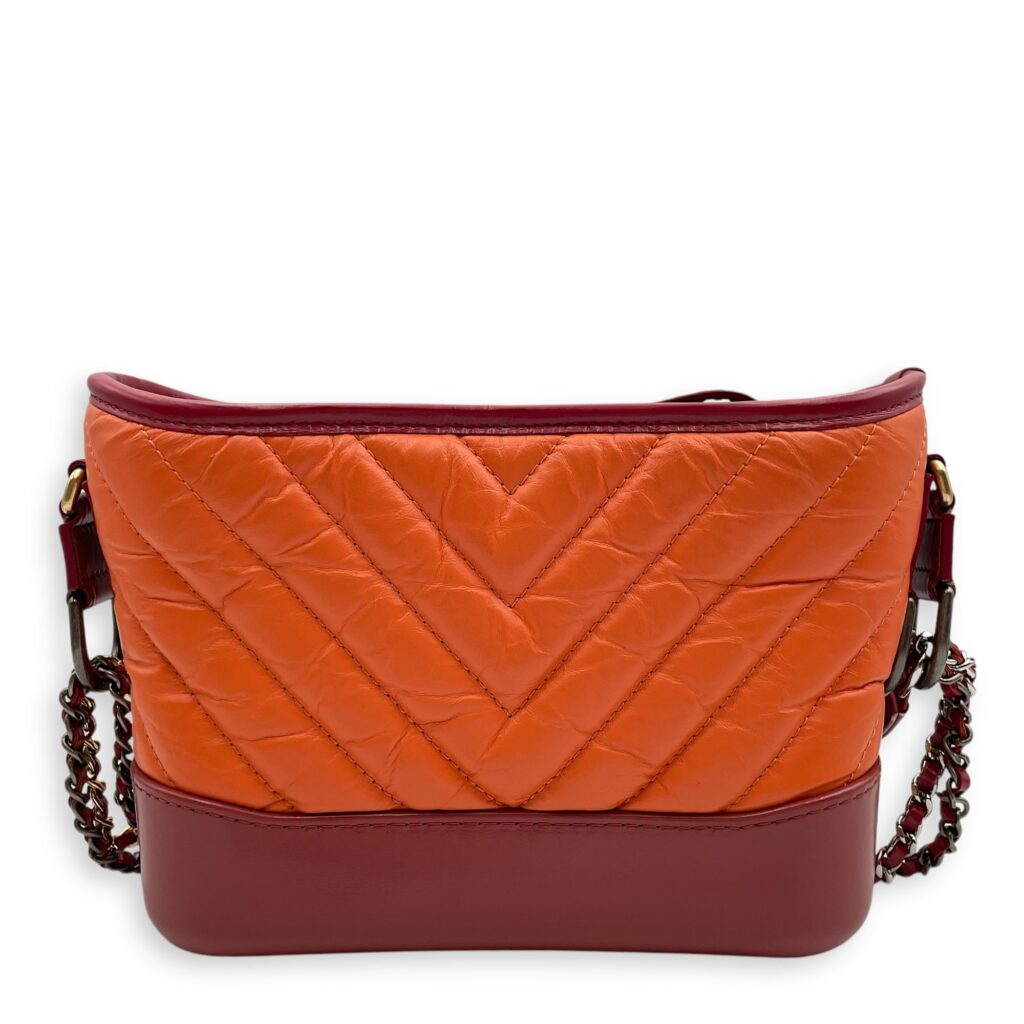 Chevron Gabrielle Small Red, Orange Crossbody Bag in Distressed Leather, 3-Tone hardware