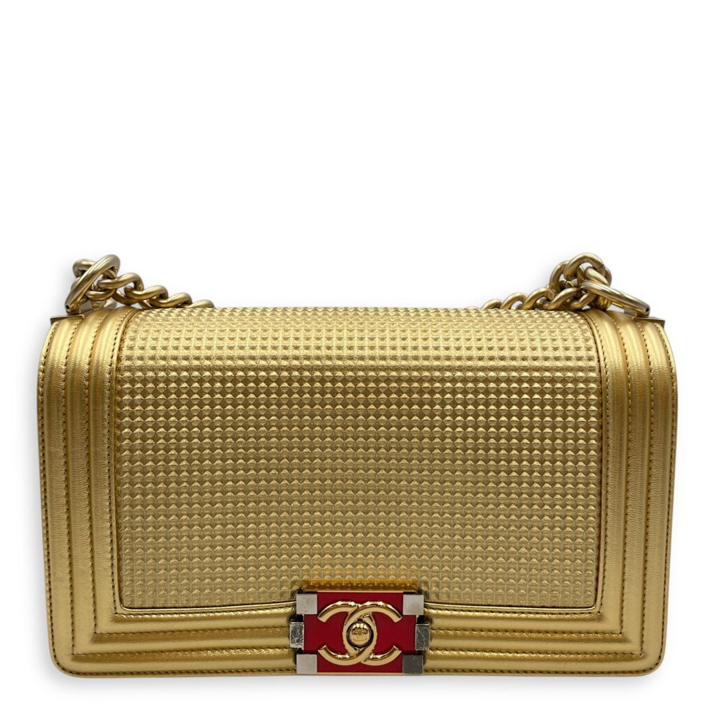 Cube Le Boy Medium Metallic Gold Shoulder Bag , Brushed Gold hardware
