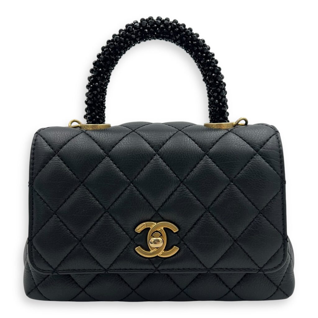 Coco Top Handle Bag Mini Black in Calfskin, Gold hardware