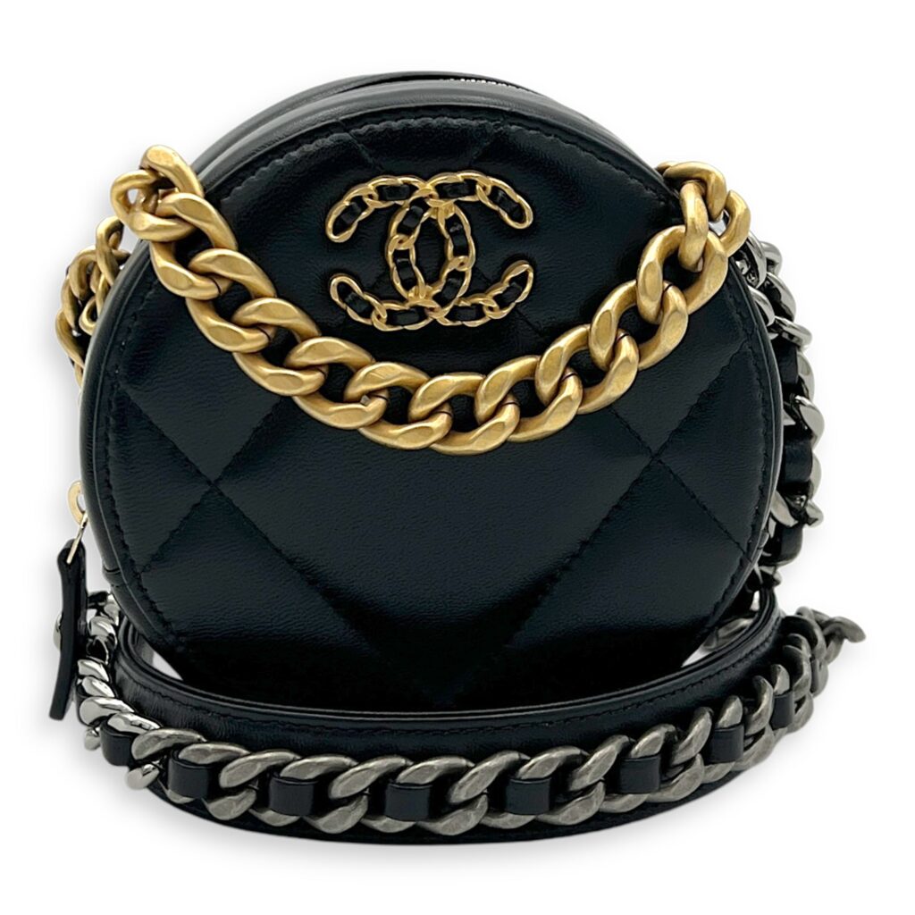 Quilted C19 Round Crossbody Bag Black in Calfskin, Mixed hardware