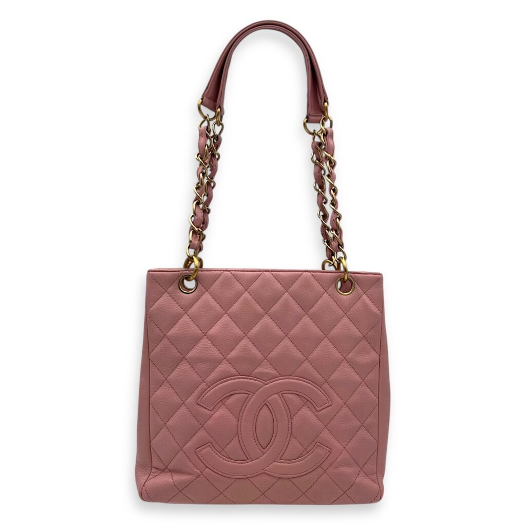 PST Petite Shopping Pink Tote Bag in Caviar Leather, Gold hardware