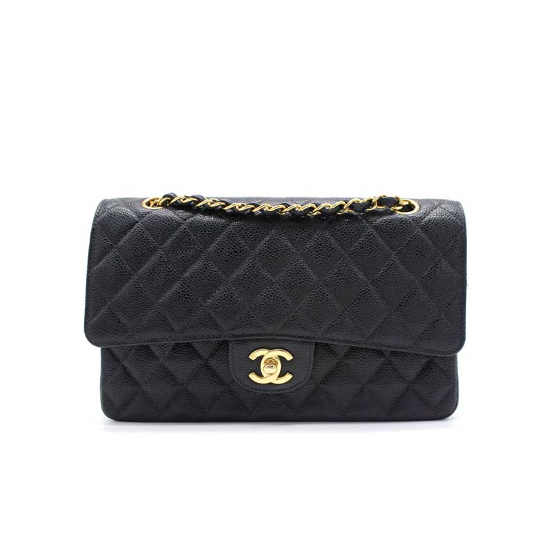 Quilted Caviar Leather Gold-Tone Black