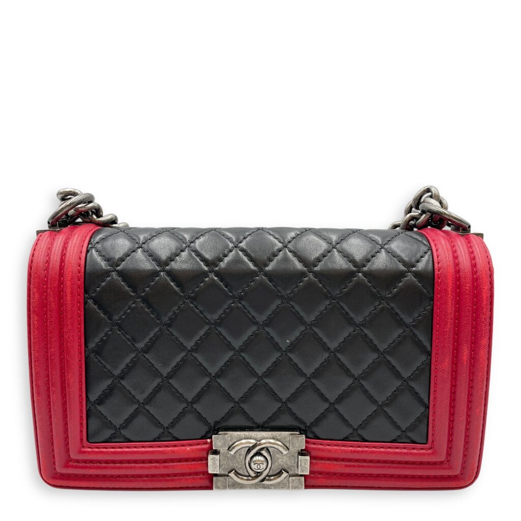 Bi-Colour Medium Boy Red/Black Crossbody Bag in Lambskin, Brushed Palladium hardware
