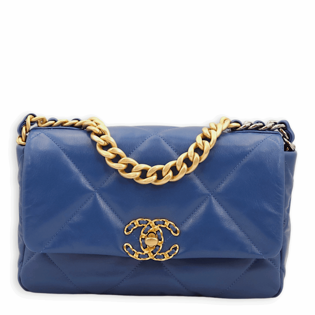 S19 Flap Small Blue Shoulder Bag in Goat Leather, 3-Tone hardware