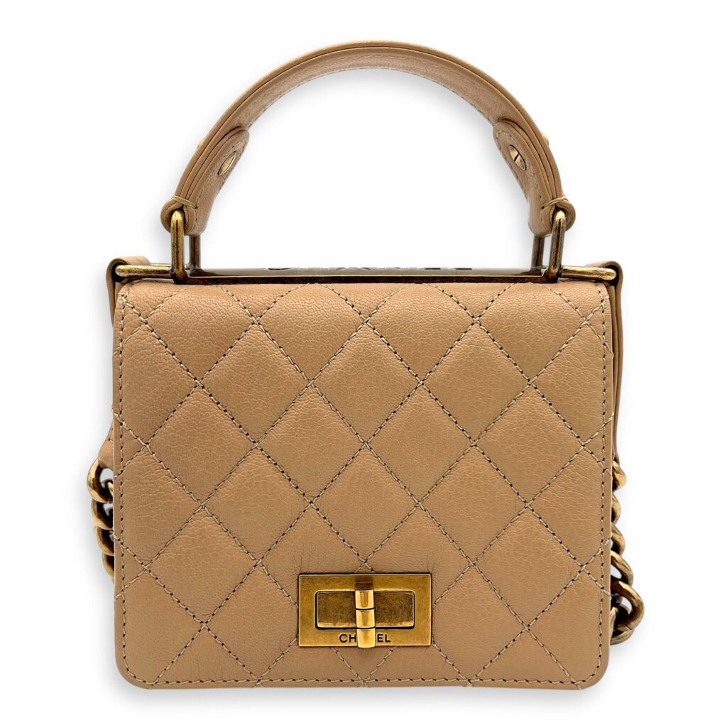 Rita Top Handle Bag Brown in Calfskin, Gold hardware