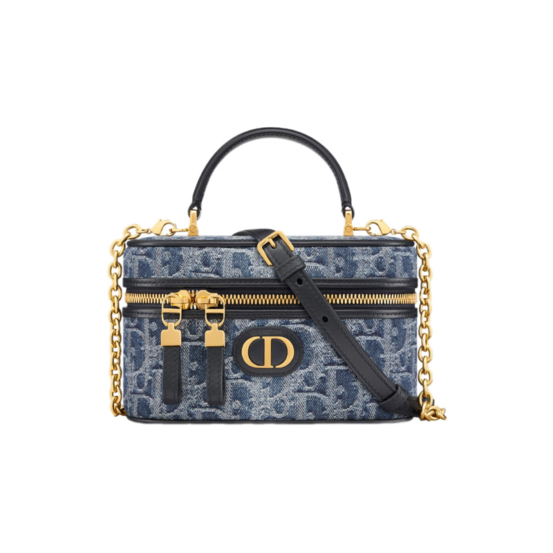 30 Montaigne Mini Vanity Case Blue Denim Dior Oblique Jacquard