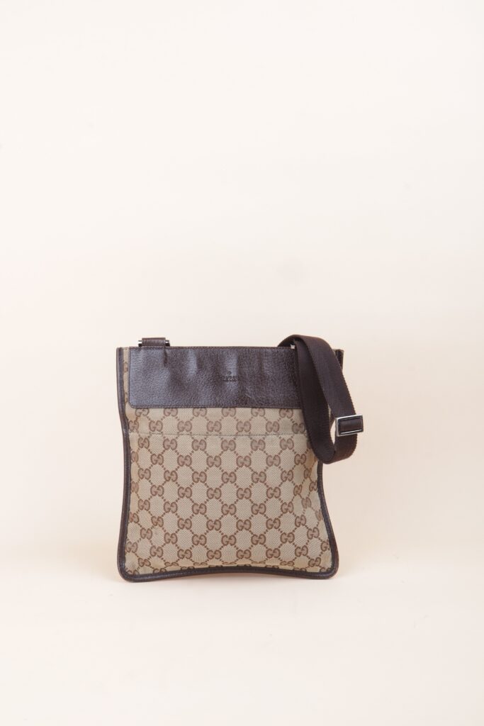 Gucci Bicolor GG Monogram Flat Messenger Crossbody Bag