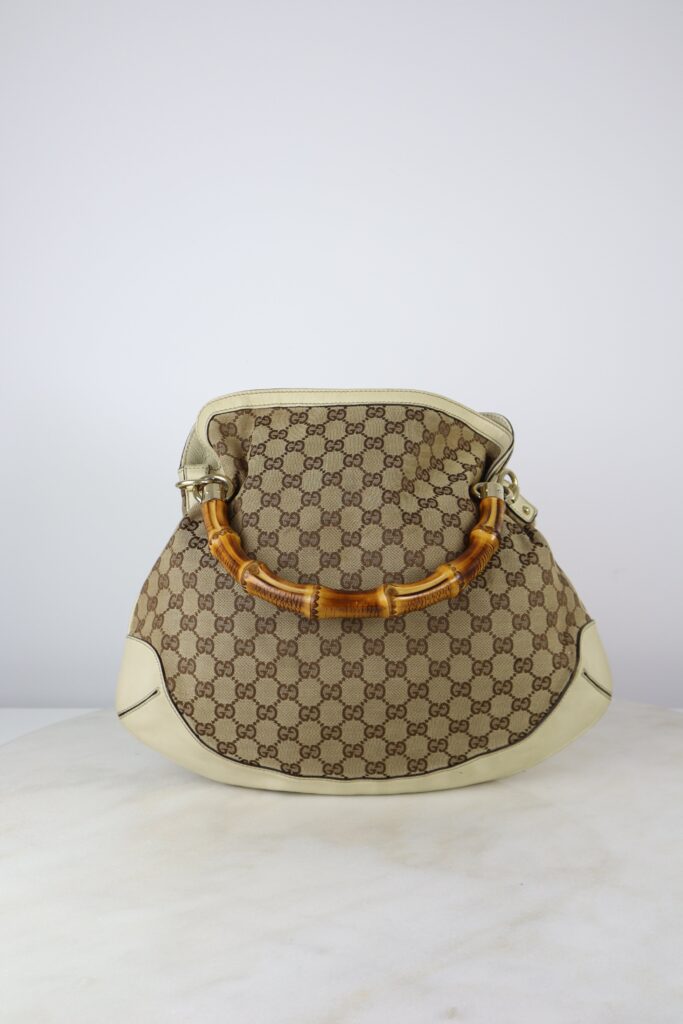 Gucci Bicolor GG Medium Peggy Bamboo Shoulder Bag