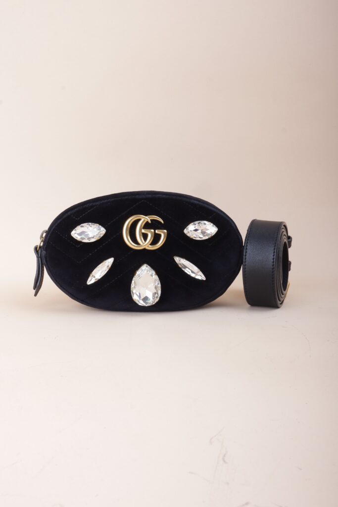 Gucci Black marquise Velvet Marmont Mini Belt Bag