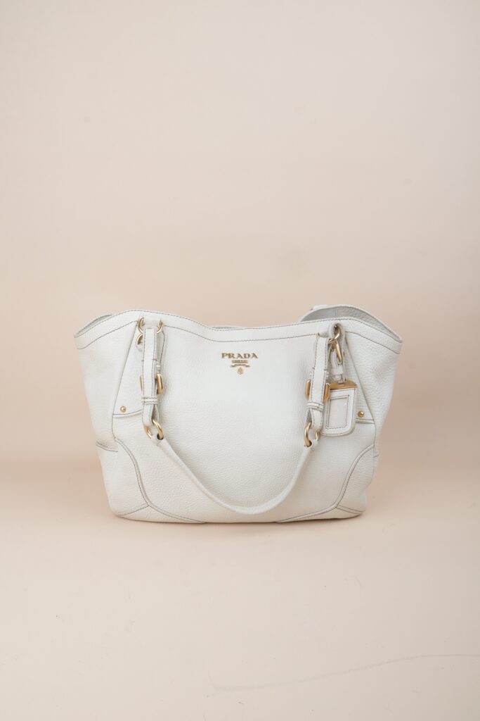 Prada White Vitello Daino Talco Cervo Shoulder Bag