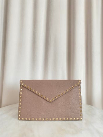Valentino New Nude Flat Pouch Uni Rockstuds Zipped Clutch with Holder