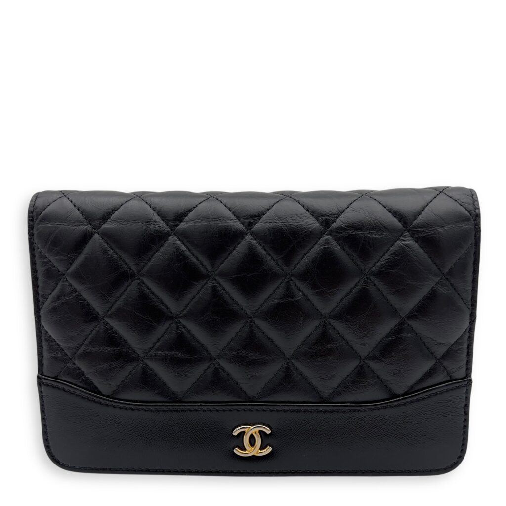 22 with CC Chain Pearl Mini Black Shoulder Bag in Calfskin, Gold hardware