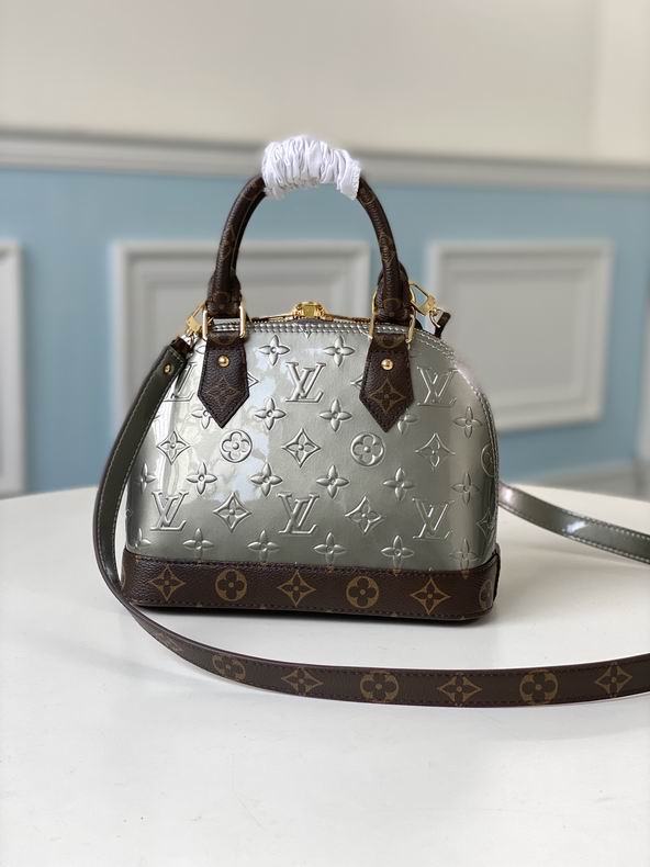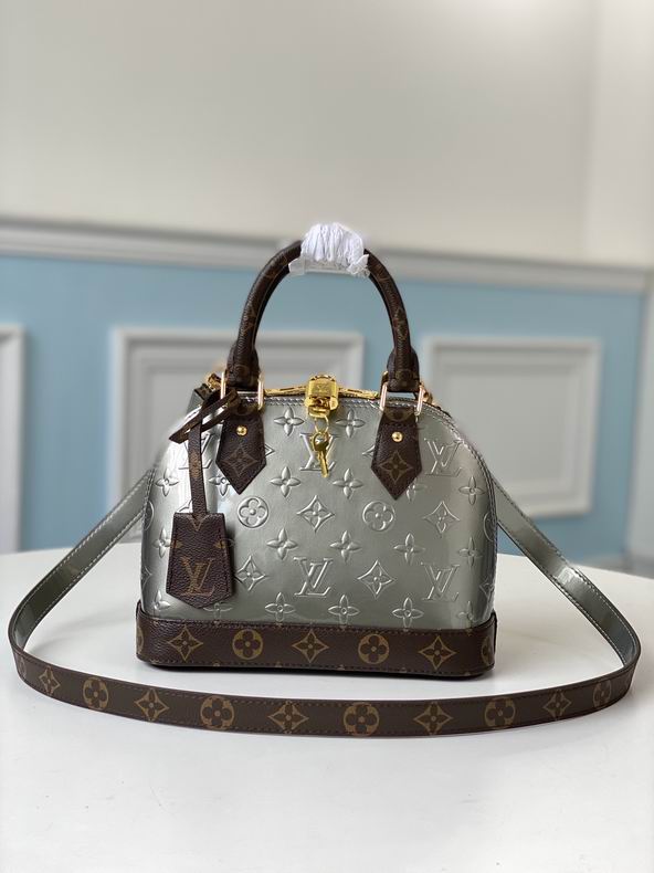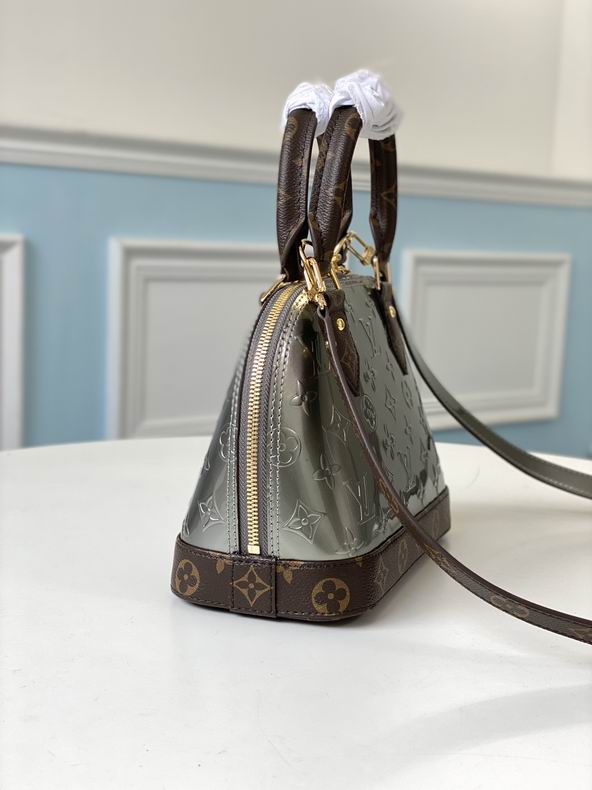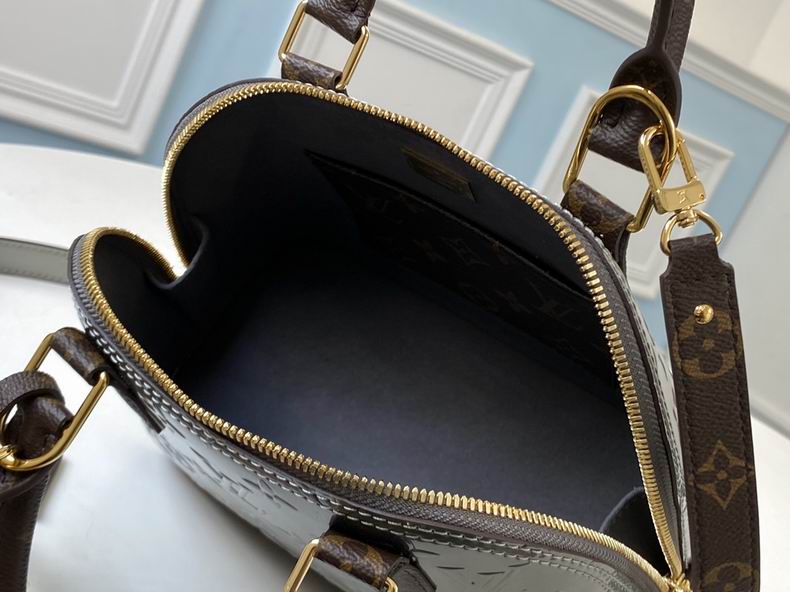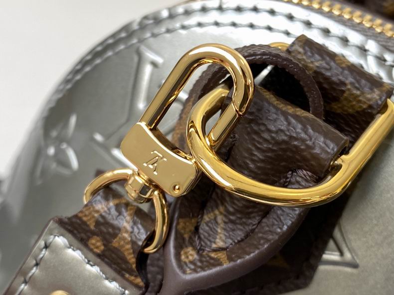 Alma BB Vernis Monogram Taupe Metallise is no stranger, it’s iconic. But when it’s uniquely designed as never-seen-before, then it’s a must-buy. Sometimes it is lighter tones or deeper tones; shines a lot or just a little; dress up or dress down. This adorably sized Alma BB handbag is instantly recognizable. Classic and timeless are beautiful words to describe LV’s style. There are light marks to the exterior and minor handle indents on the front and back. For this mix of leathers, there is more than 1 bag style available.