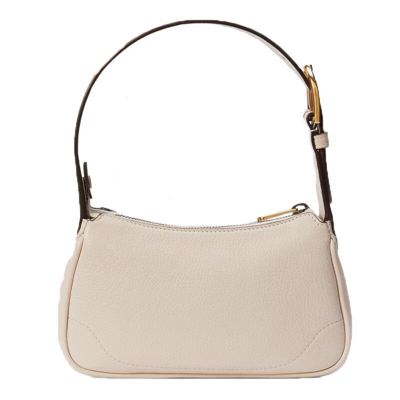 The unmistakable Double G hardware, for a sleek yet unexpected look. Here, it’s presented in a soft white leather with a gold-toned zip closure.