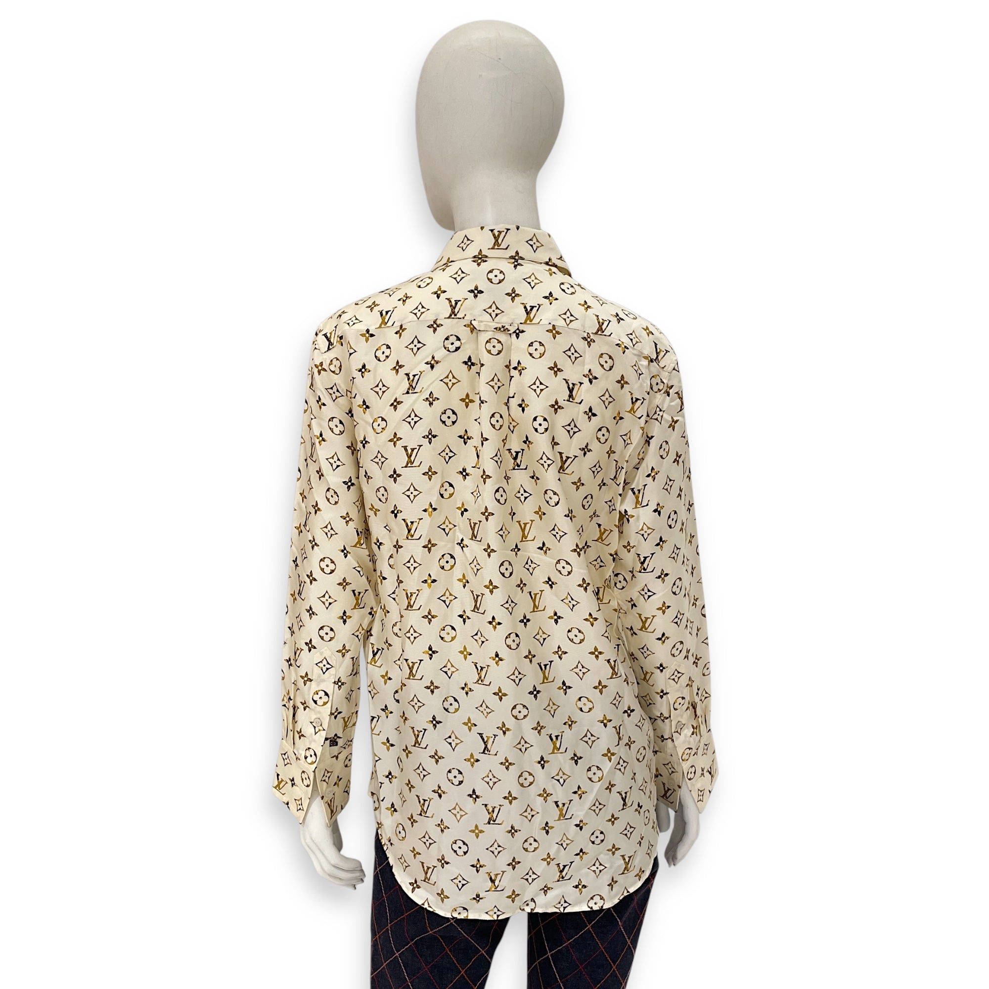 Brown Monogram Logo Silk All Over Zip Up 32 Multi-Color Ready-To-Wear