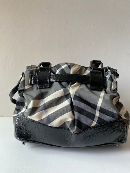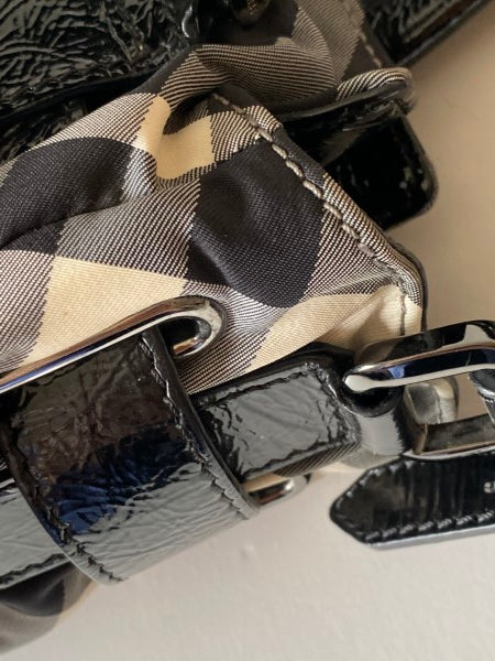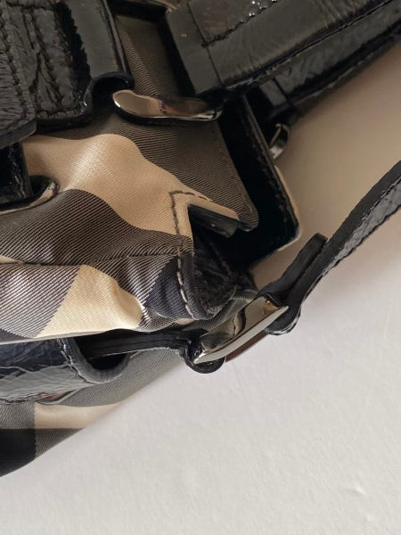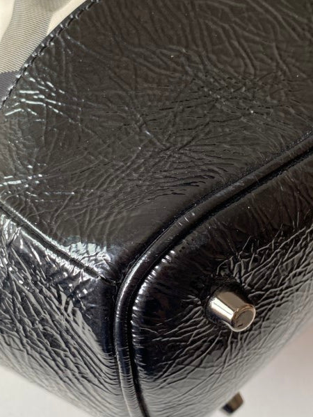 • Material: Black/White Check Nylon with Black Patent Leather Trim