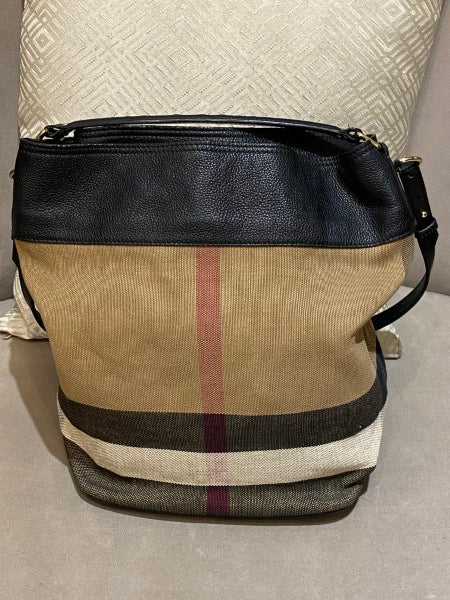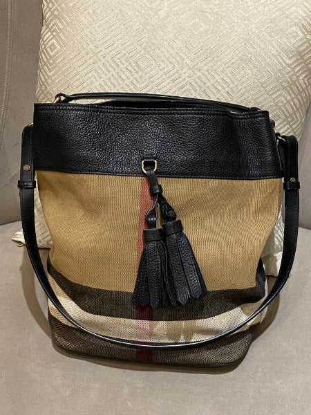 Burberry Black Brit Check Ashby Bucket Bag