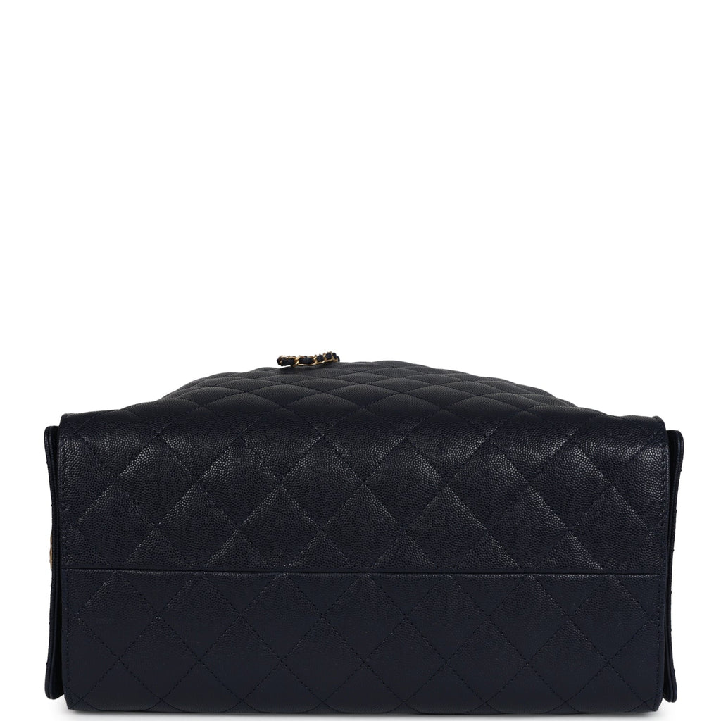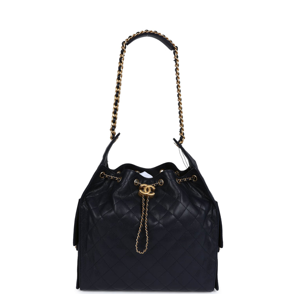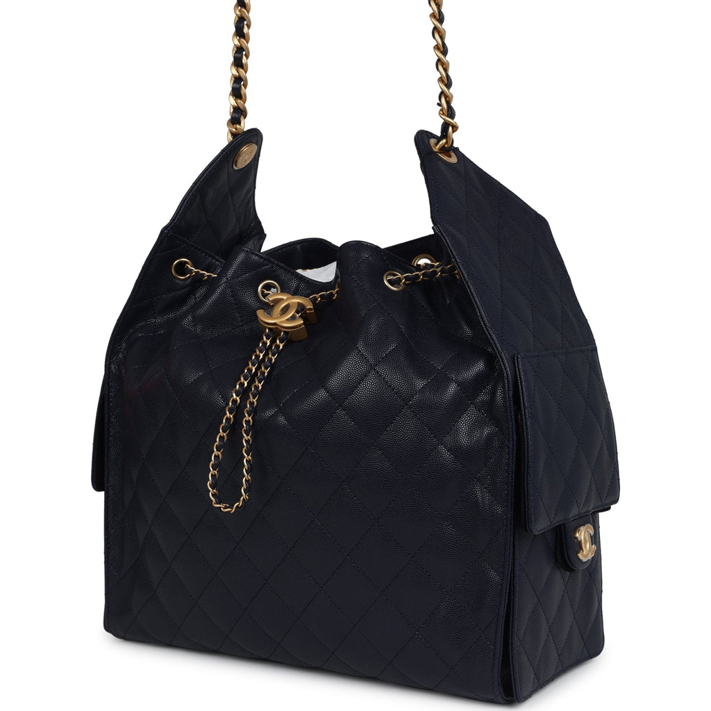 Chanel Medium 25 Hobo Bag Dark Navy Caviar Antique Gold Hardware Shop for an authentic Chanel Medium 25 Hobo Bag in dark navy caviar with antique gold hardware in new and never worn condition at Madison Avenue Couture.