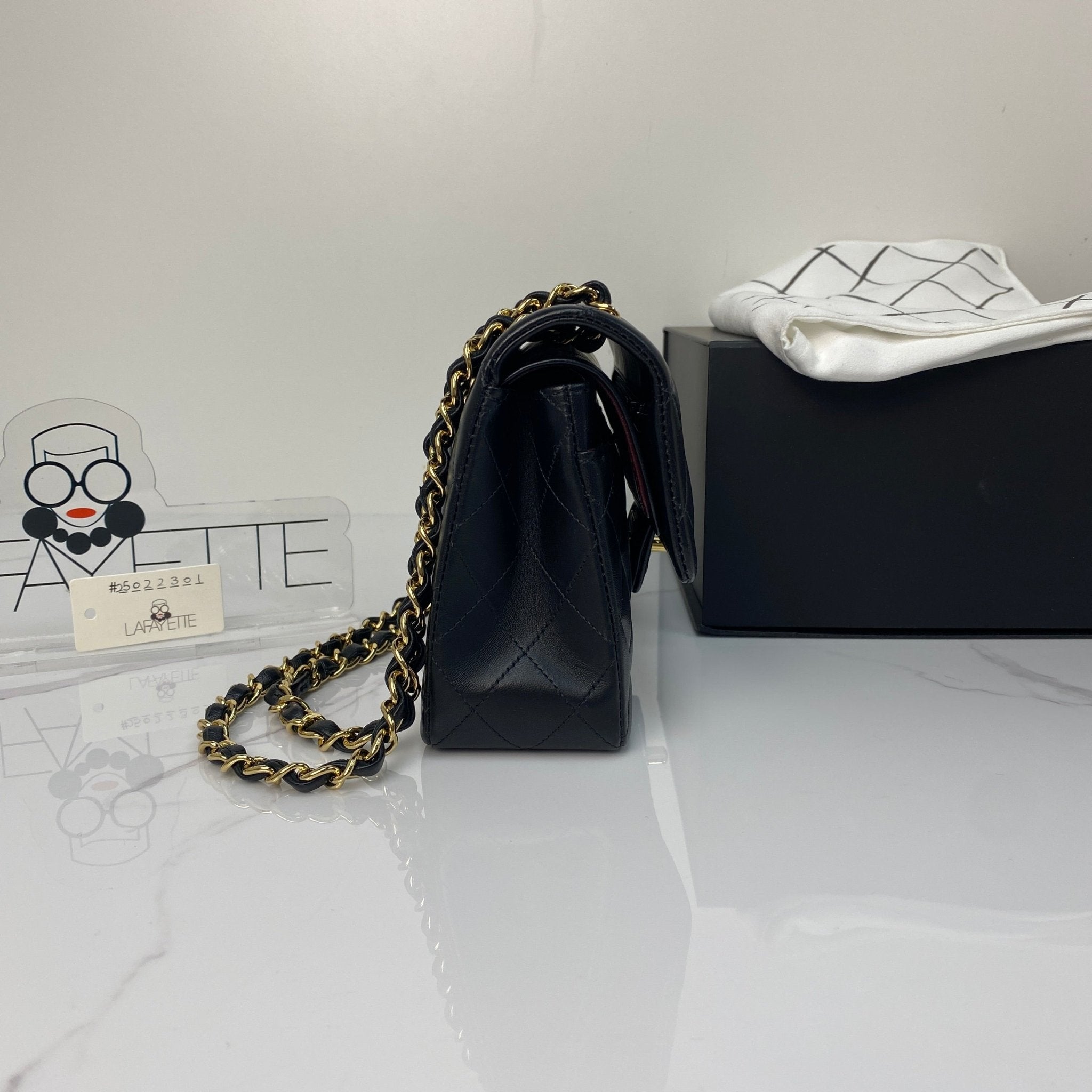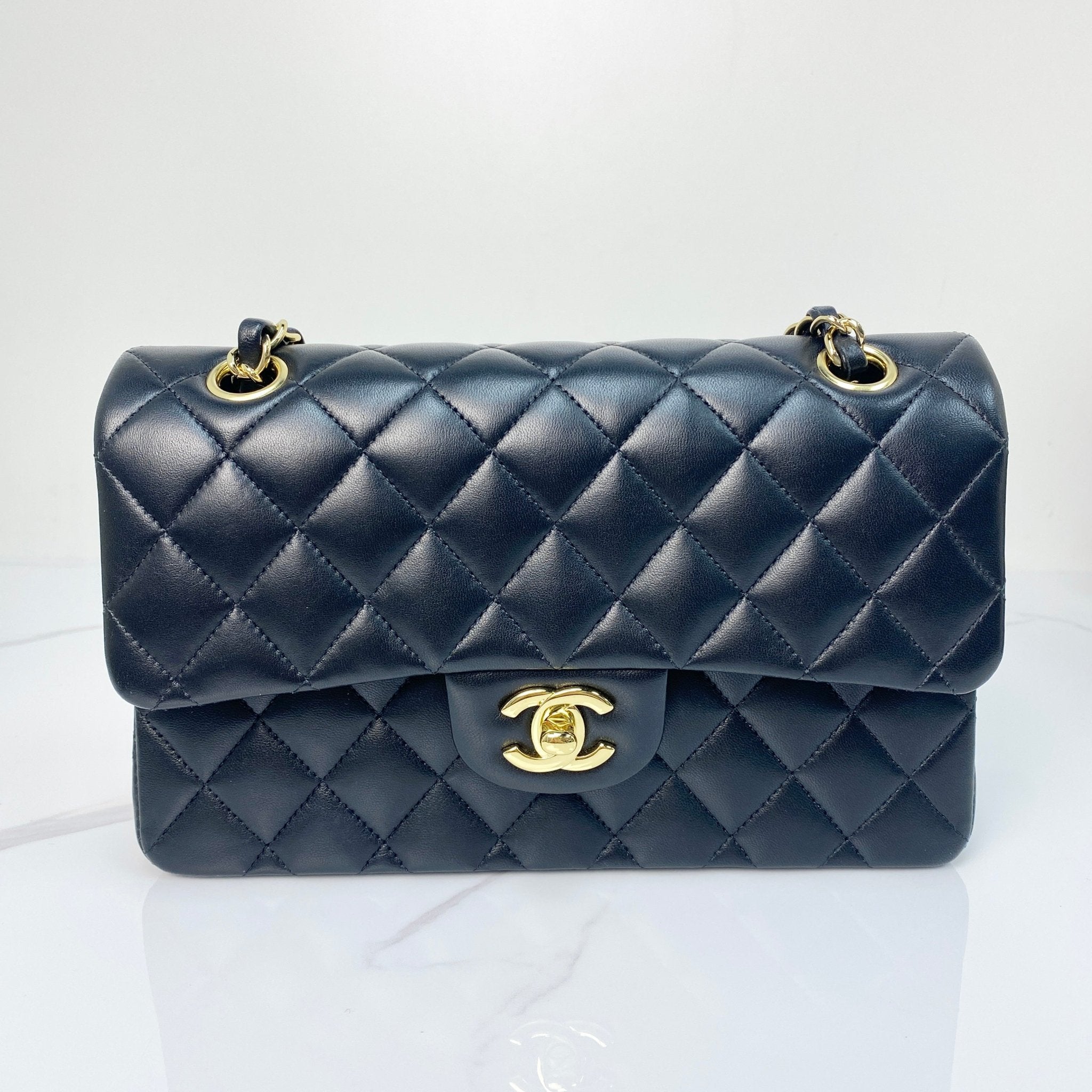 The Chanel Small Classic Flap in Black lambskin is the definition of timeless elegance. Dress it up with an evening gown or pair it with denim and a blazer for effortless Parisian chic. Its versatile size and iconic design make it a forever staple.