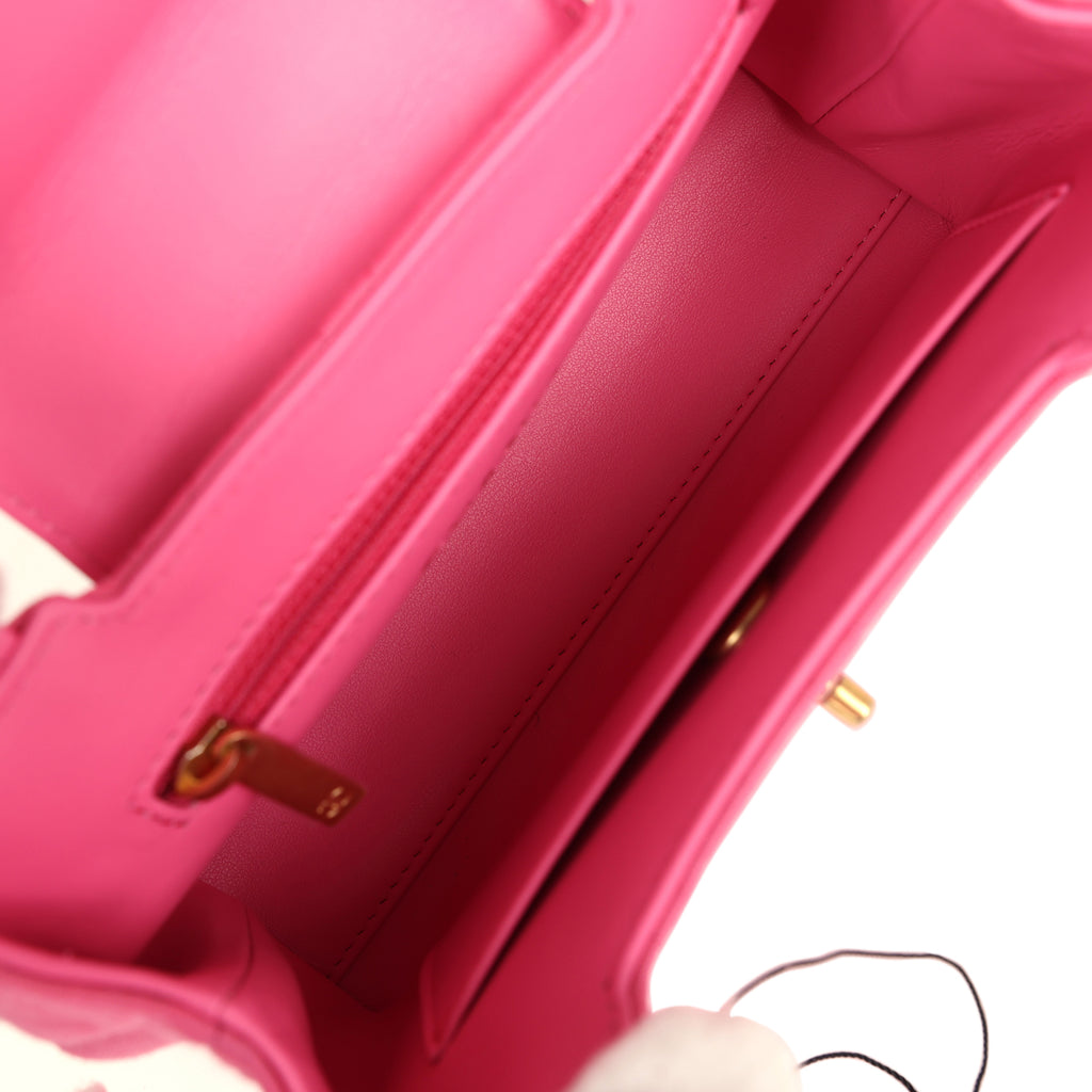 This Small Kelly is in dark pink jersey with brushed gold hardware, tonal stitching, two flat back top handles, interwoven brushed gold and pink leather shoulder strap, and the signature CC turnlock closure.The interior is lined with dark pink leather and has one zipper and one slip pocket.Collection: 23K (RFID)Origin: ItalyCondition: New and never worn (plastic on hardware)Accompanied by: Chanel box, Chanel dustbag, carebook, retail UPC, RFIDMeasurements:  7.75″ width x 5″ height x 2.5″ depth; 2.5″ handle drop 23″ strap drop