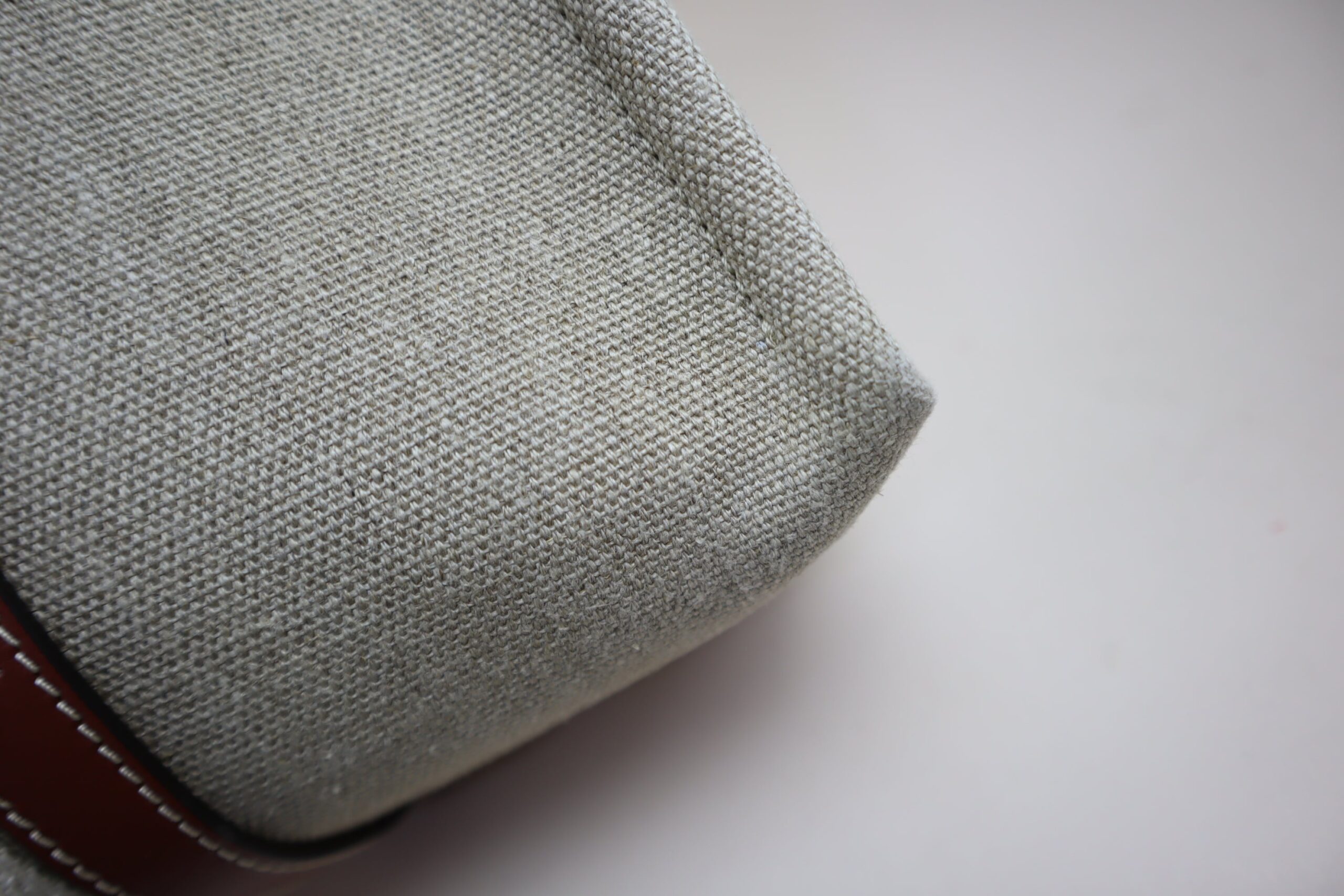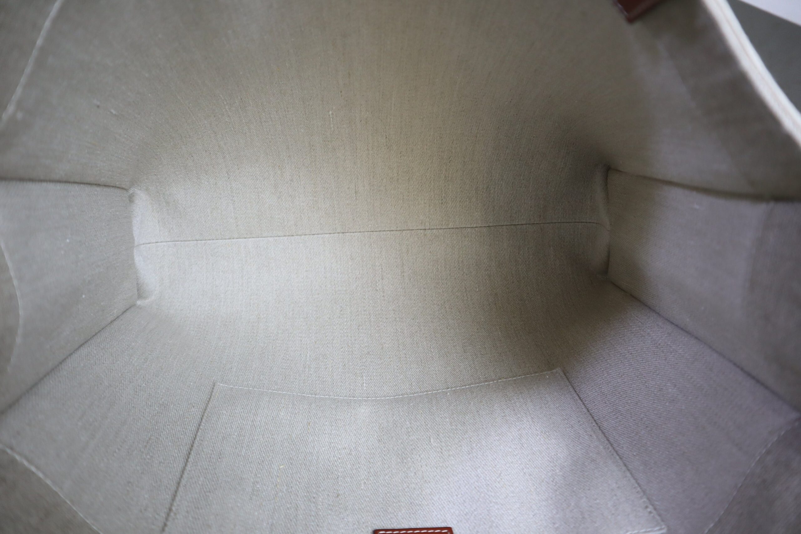 • Material: White Linen Canvas with Brown Calfskin Leather Trim