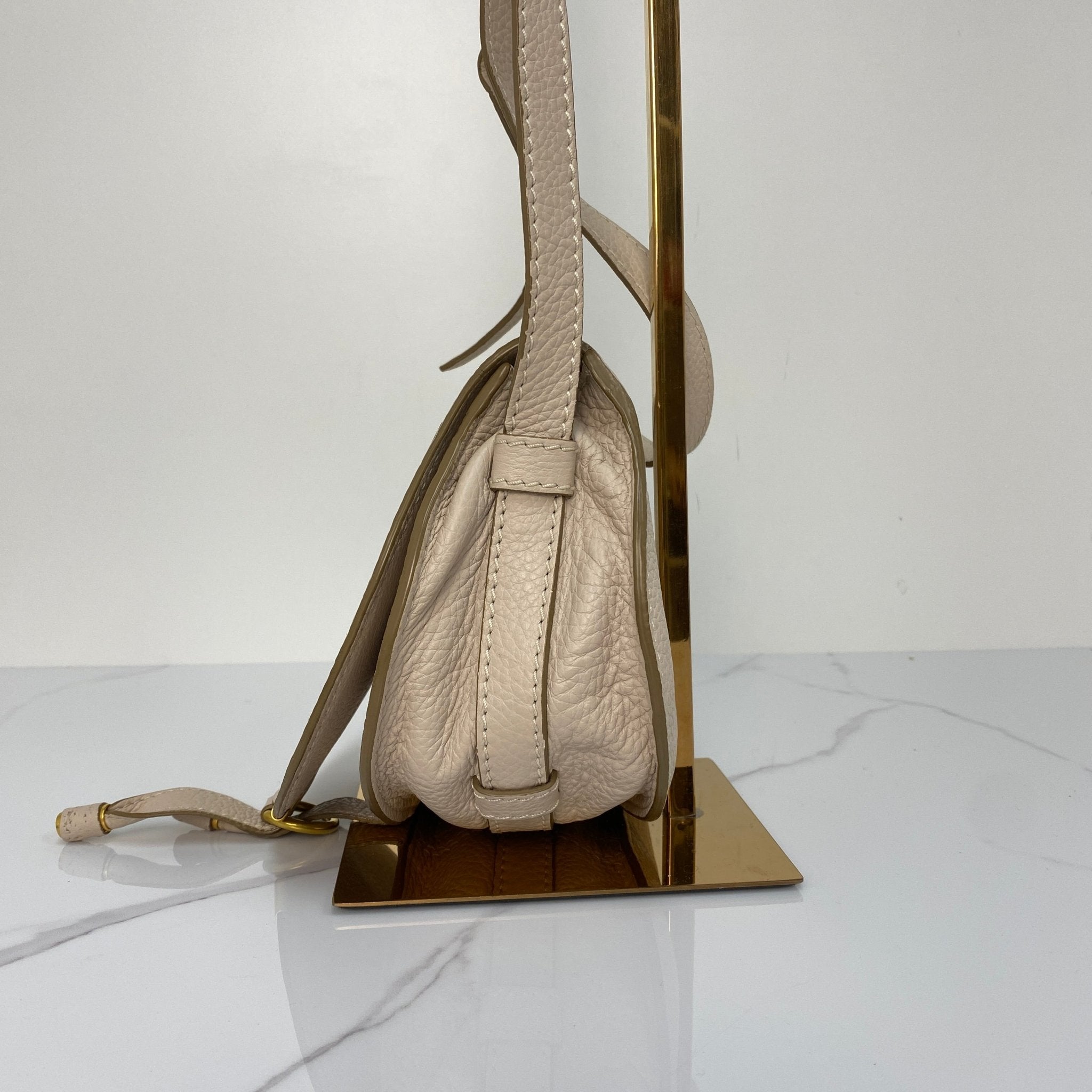 Embrace the season’s love for neutrals with the Chloé Marcie Crossbody Bag in beige. This timeless piece is perfect for the current trend of earthy tones and relaxed, effortless style. Its soft leather and iconic saddle shape make it the ideal accessory for transitional weather, pairing beautifully with cozy knits and layered outfits for a chic, seasonal look.