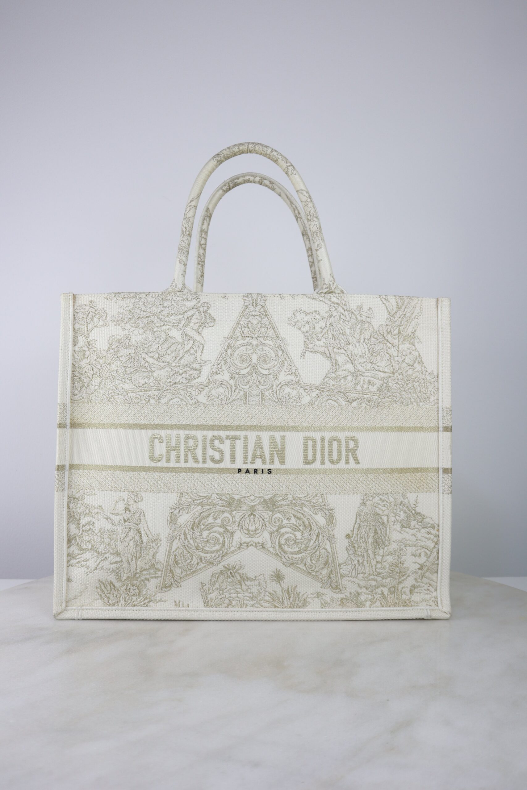 Christian Dior Off White Embroidery Large Book Tote Bag