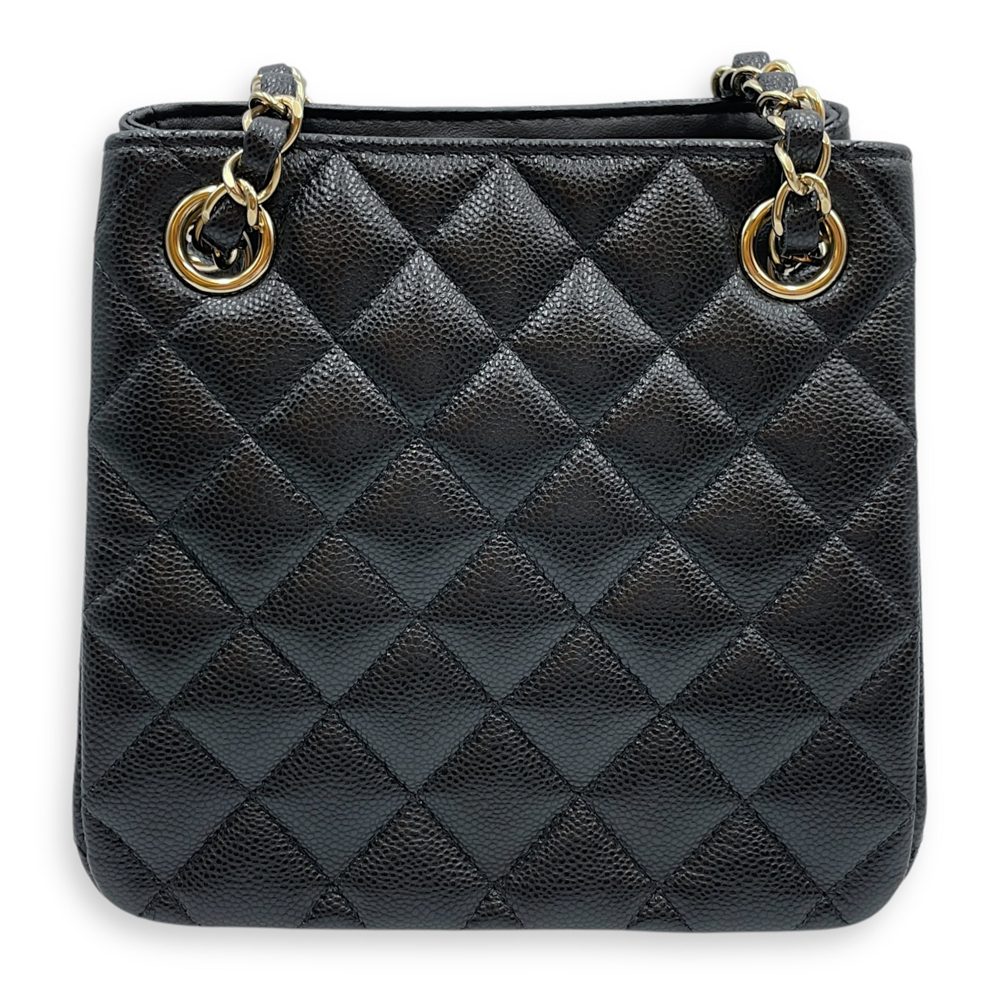 Classic Mini Black Bucket Bag in Caviar Leather, Gold hardware