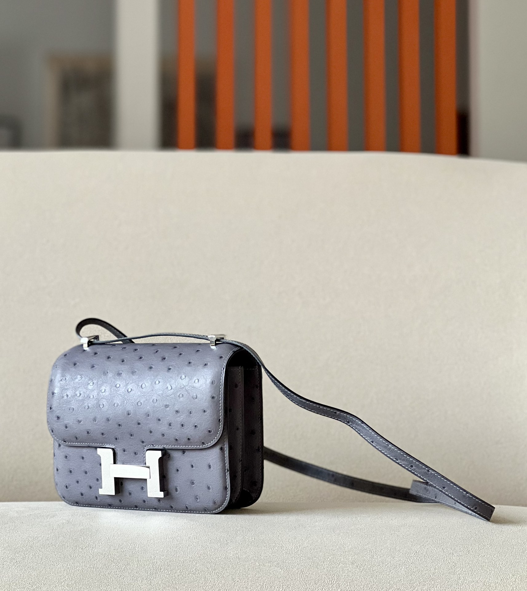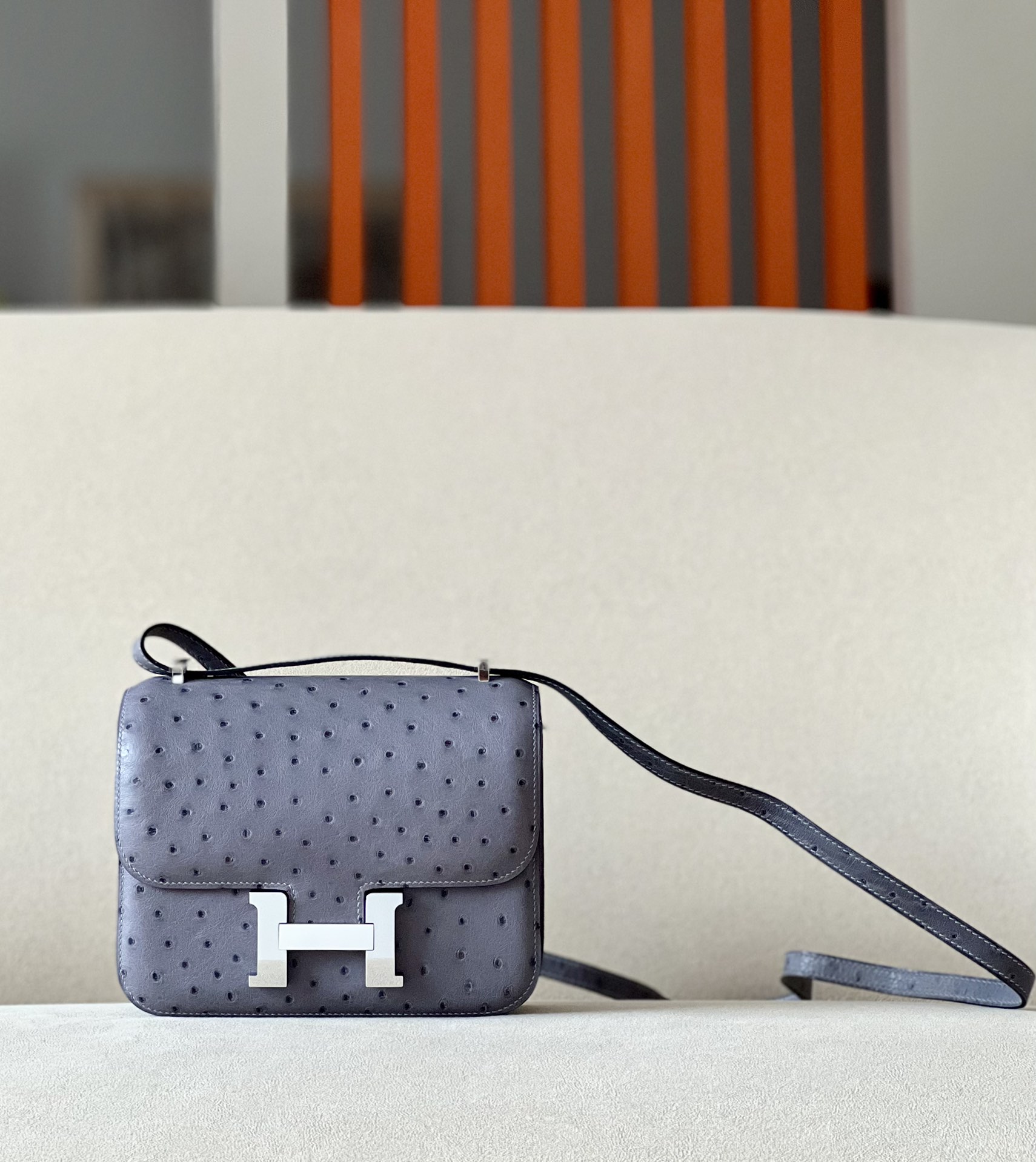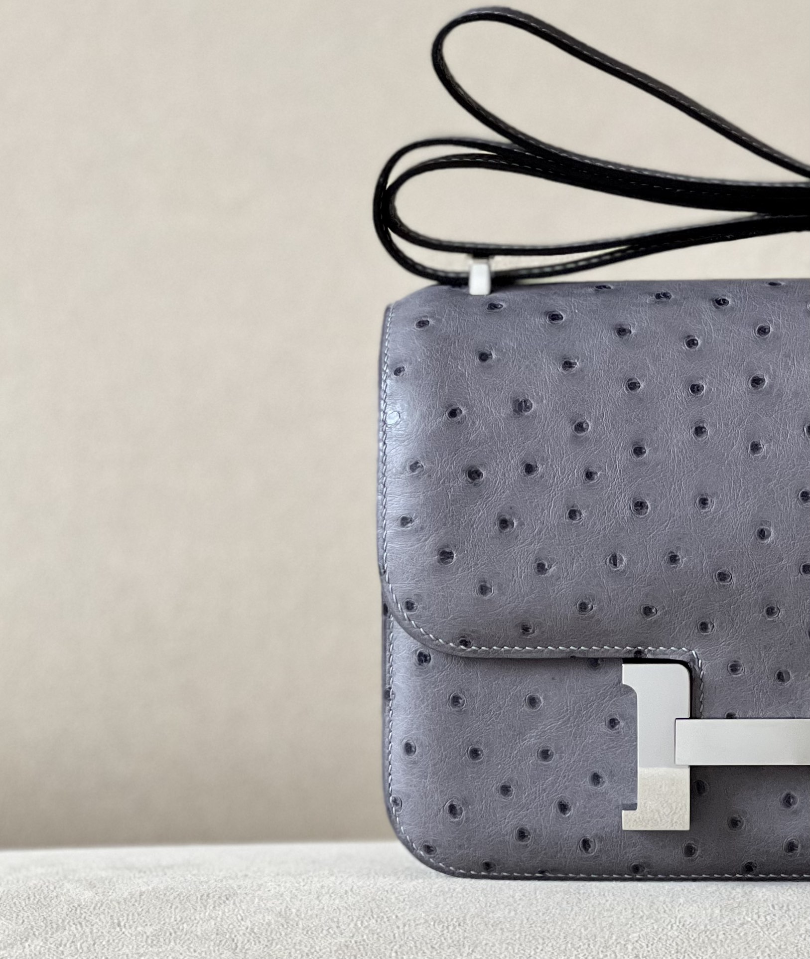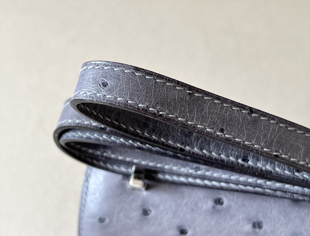 “The bag features a long shoulder strap , including an H buckle on the flap.