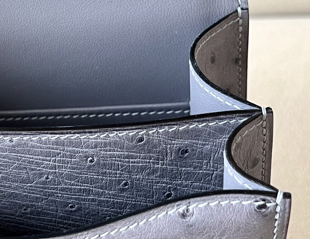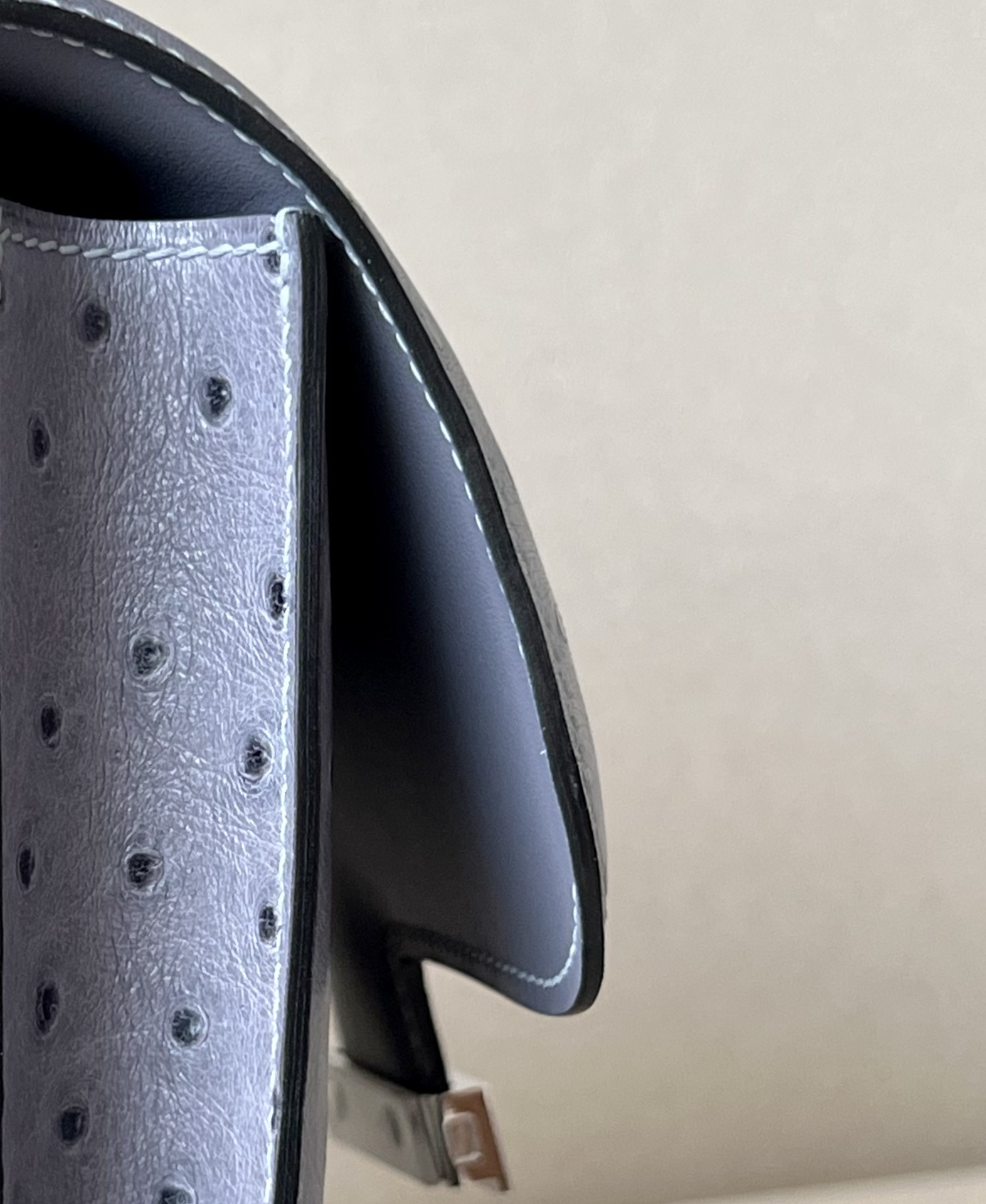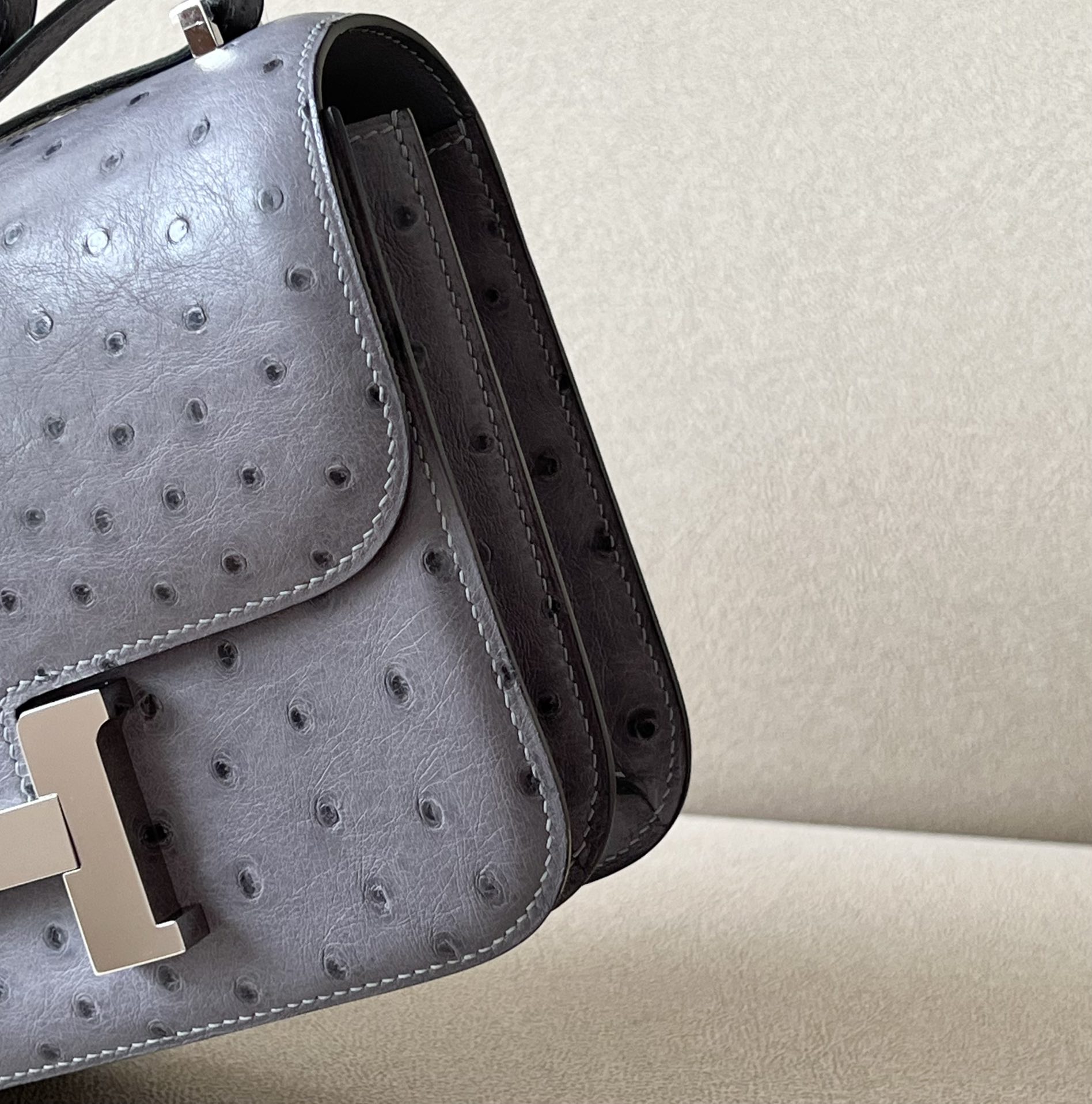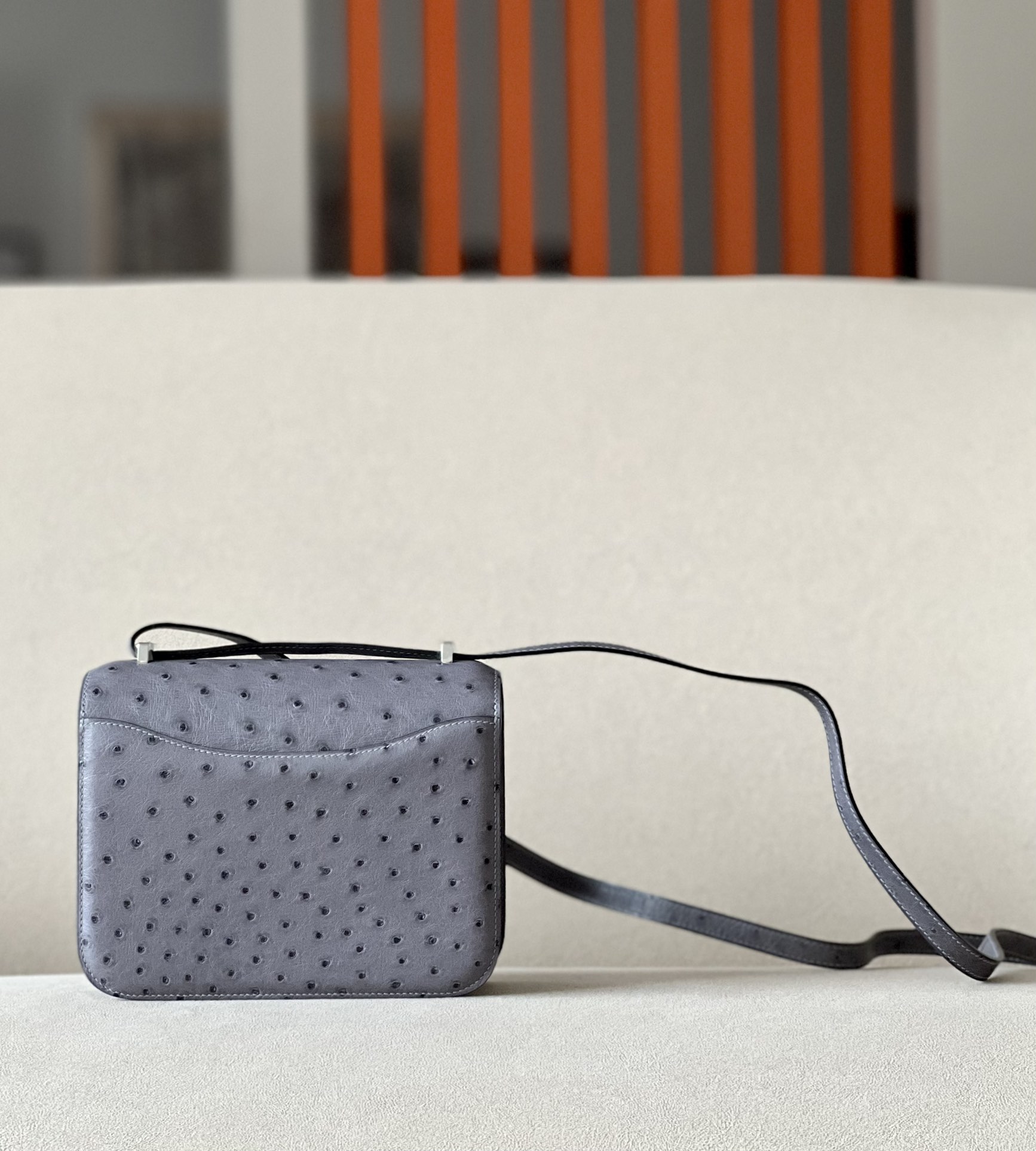 “The bag features a long shoulder strap , including an H buckle on the flap.