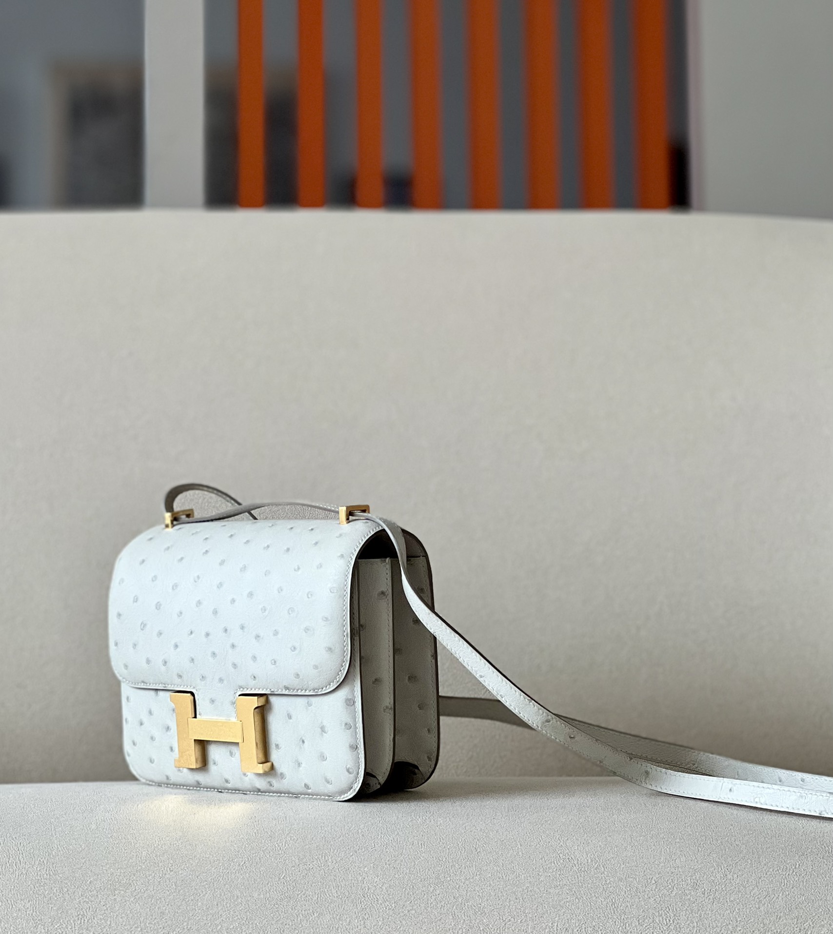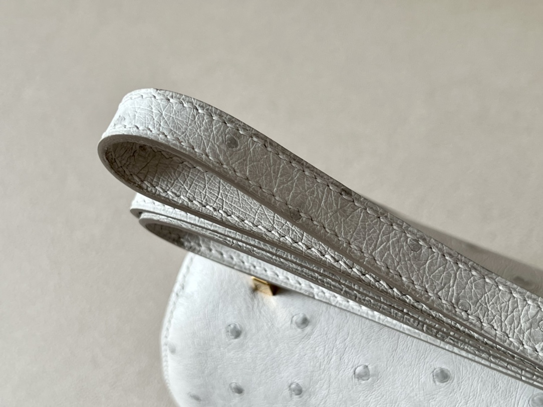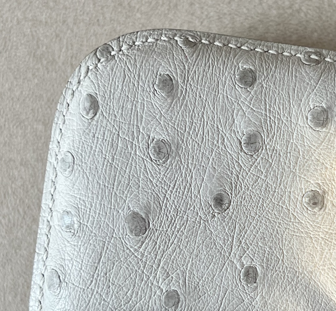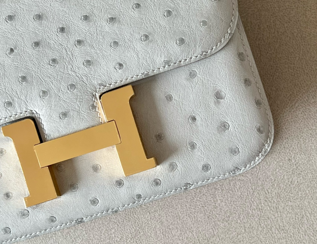 Be the first to review “Constance 19 Ostrich Gris Perle (80) Gold Hardware”