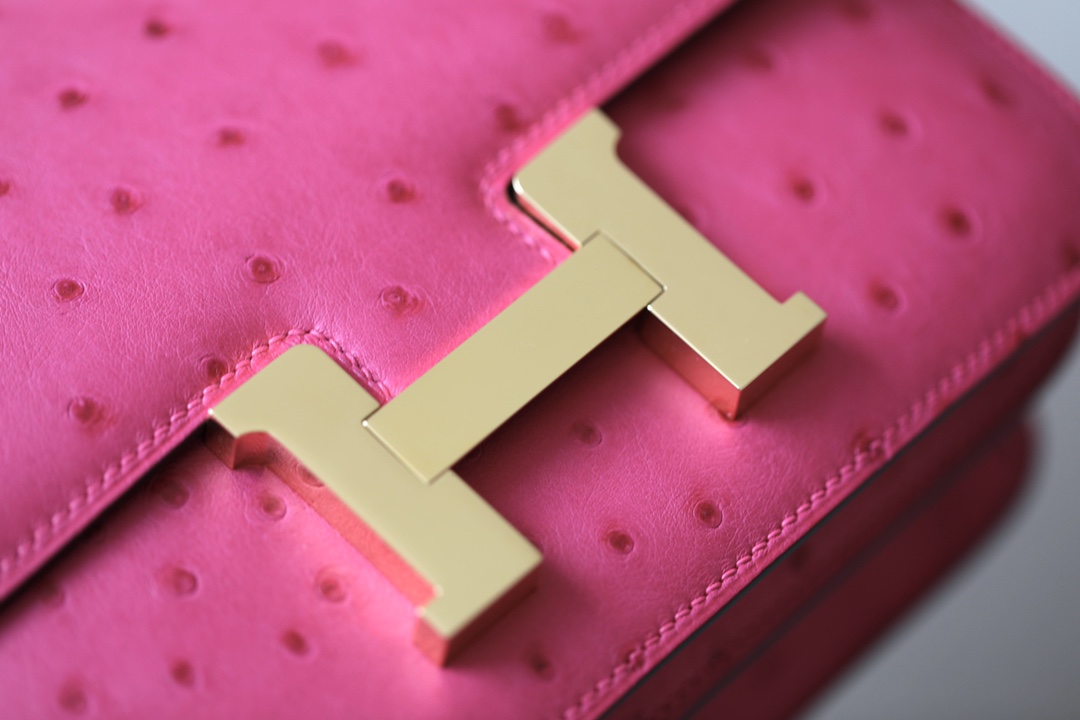 Constance 19 Ostrich Rose Tyrien (E5) Gold Hardware