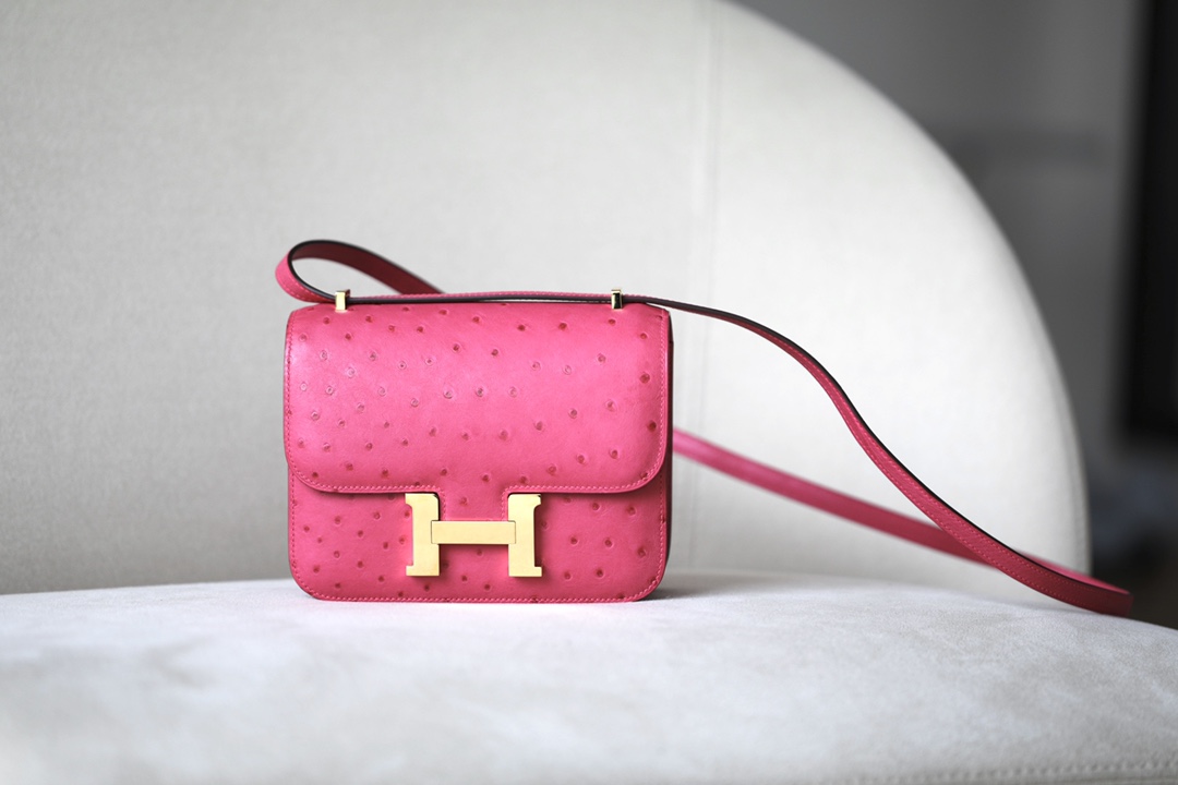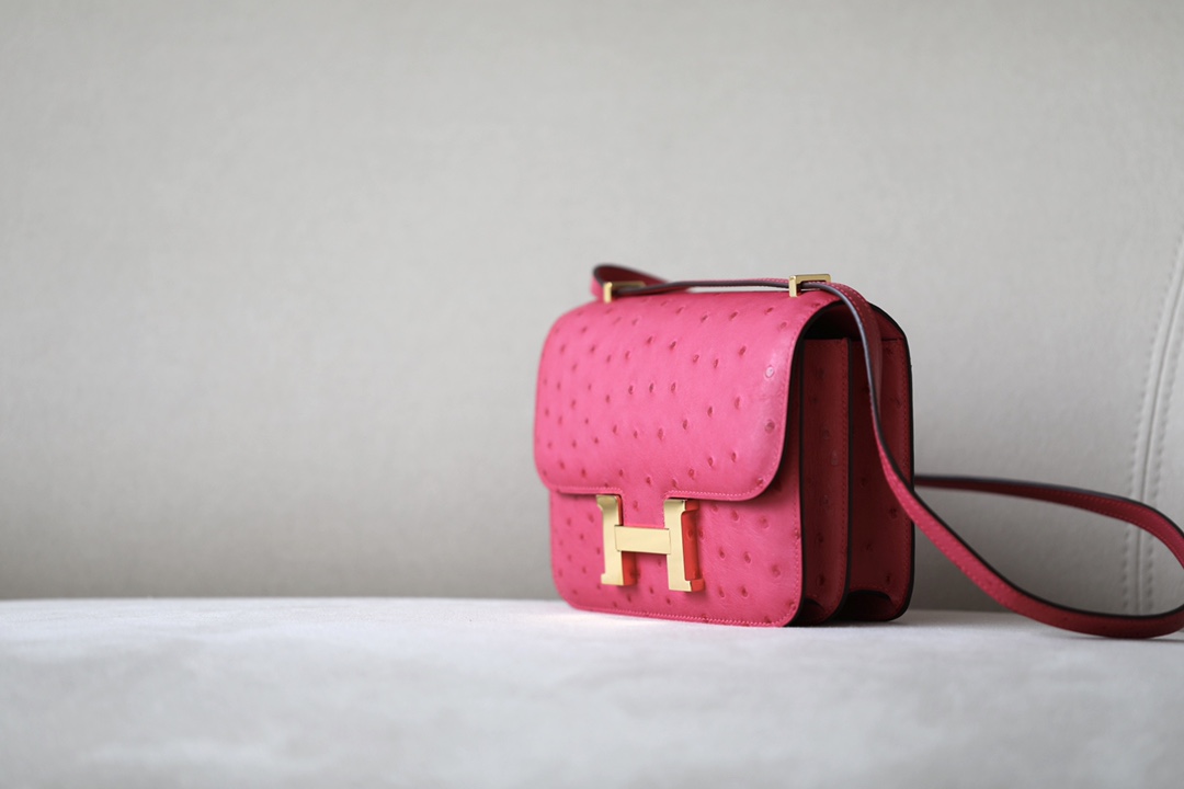 Be the first to review “Constance 19 Ostrich Rose Tyrien (E5) Gold Hardware”