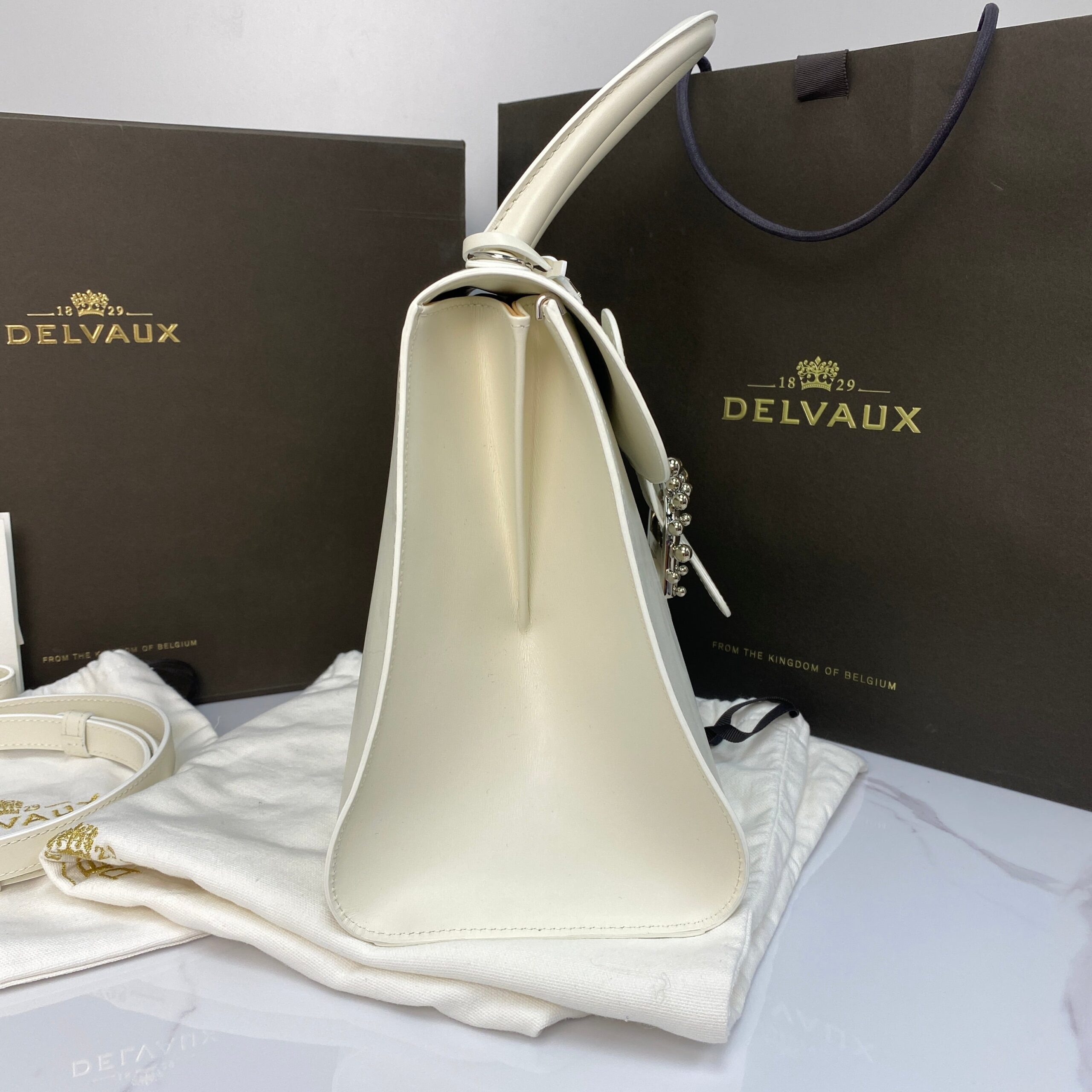 Discover the impeccable craftsmanship of the Delvaux Brillant MM. Made from luxurious white Box Calf, this bag exudes elegance and refinement. Its iconic design and exquisite details embody the timeless allure and heritage of Delvaux.