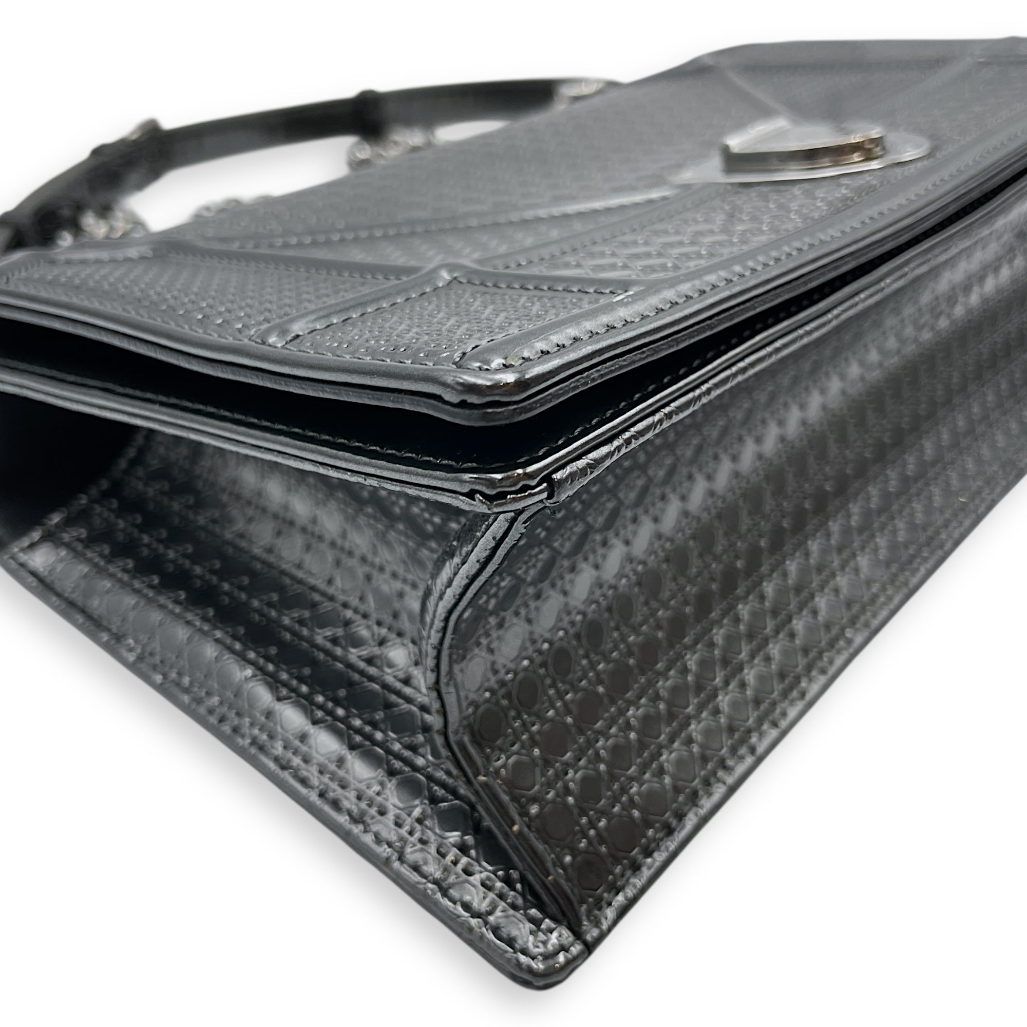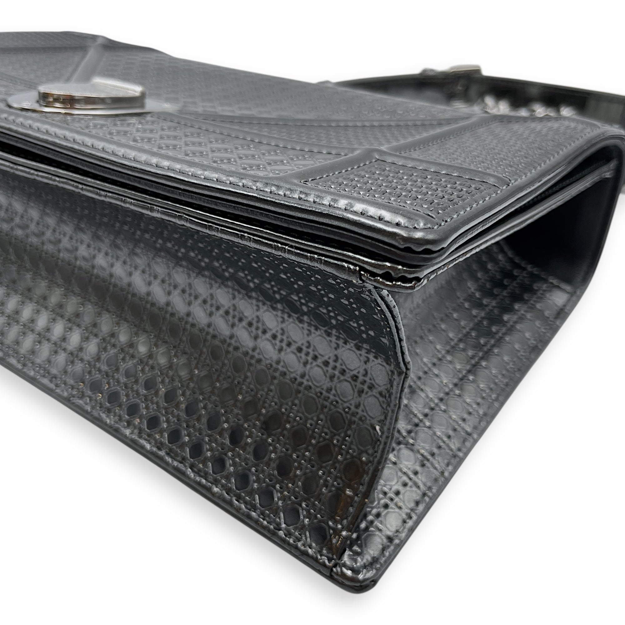 Diorama Medium Metallic Grey Shoulder Bag in Patent Leather, Silver hardware