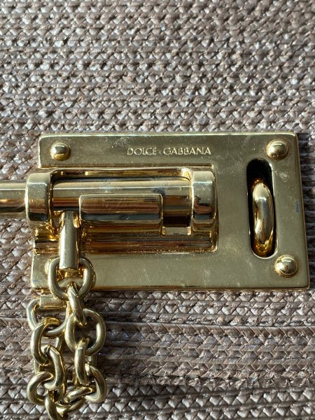 Dolce & Gabbana Dark Beige Raffia Miss Monica Top Handle Bag