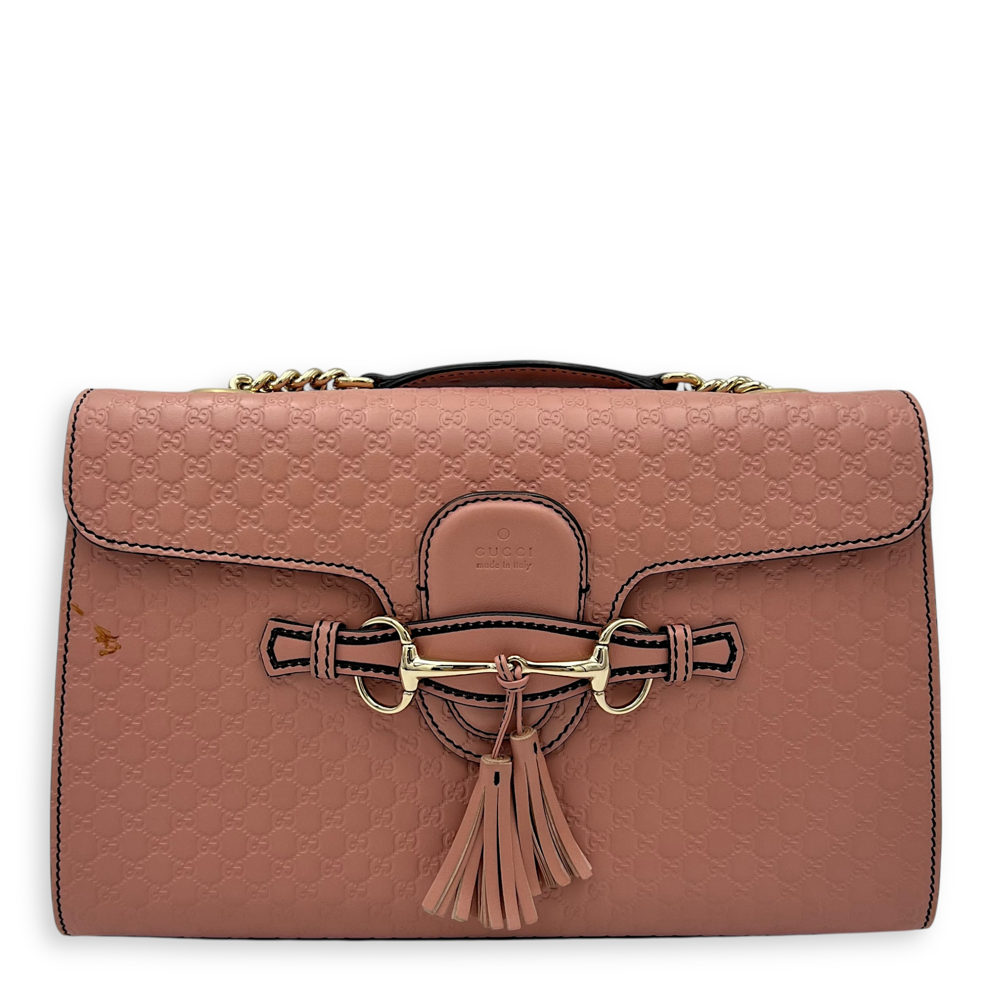 Emily Pink Shoulder Bag in Guccissima Leather, Gold hardware