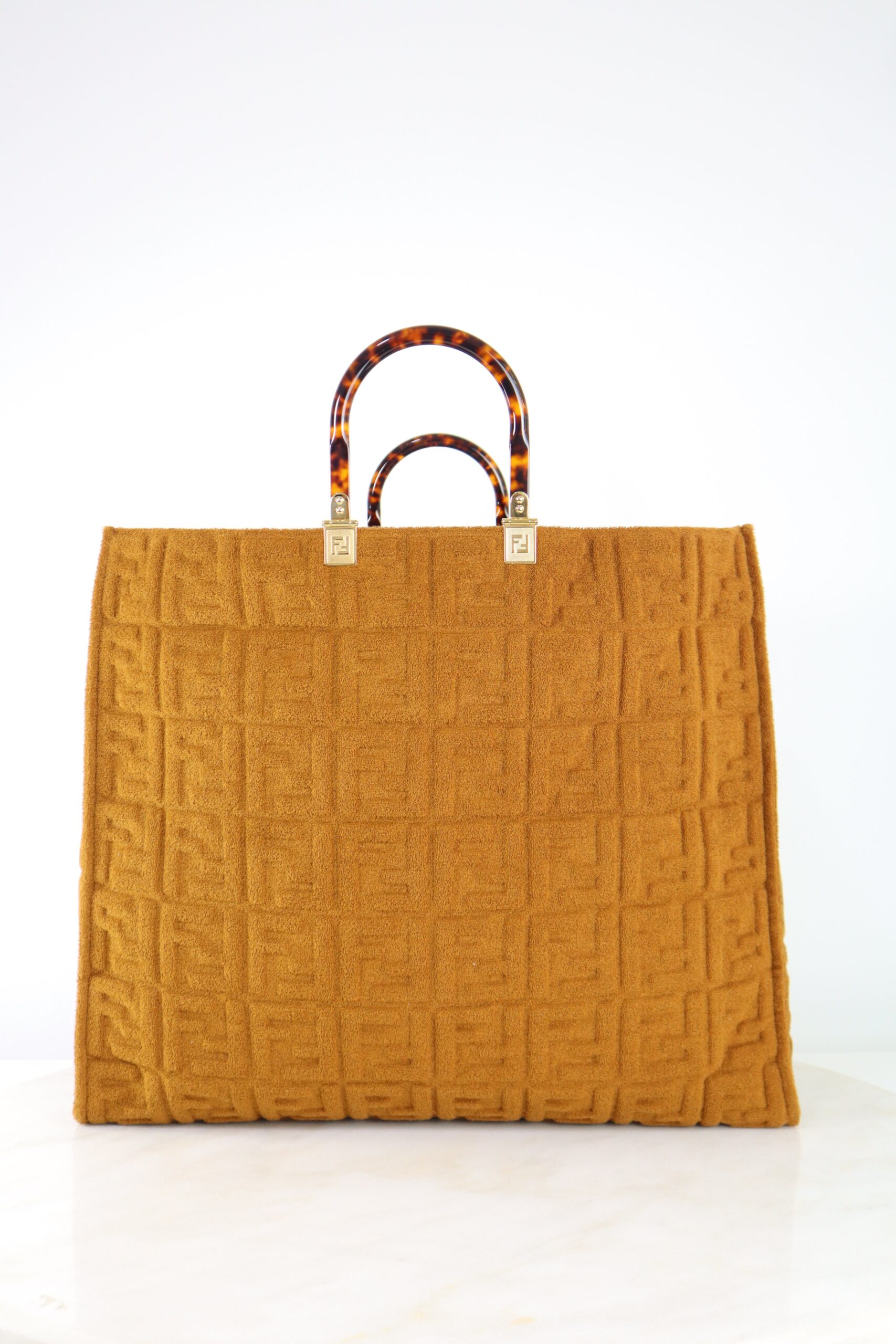 Fendi Brown Terrycloth Embossed XL Sunshine Tote Bag