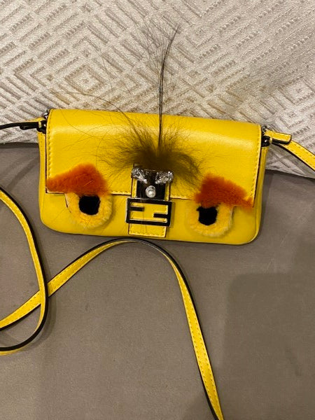 Fendi Yellow Fur Micro Monster Baguette Bag