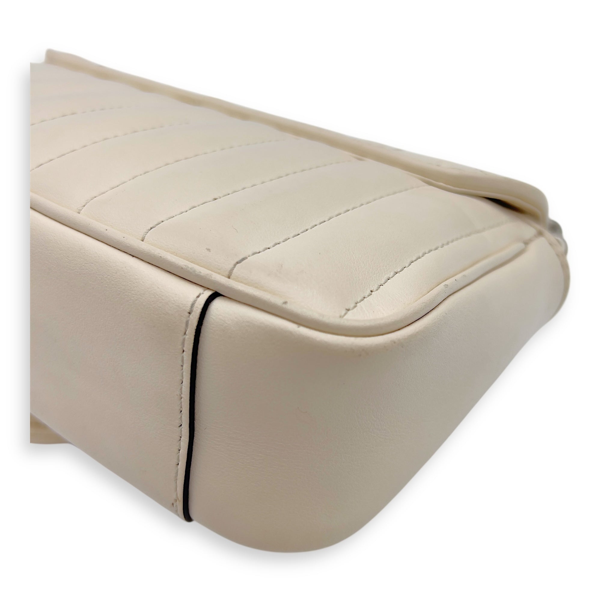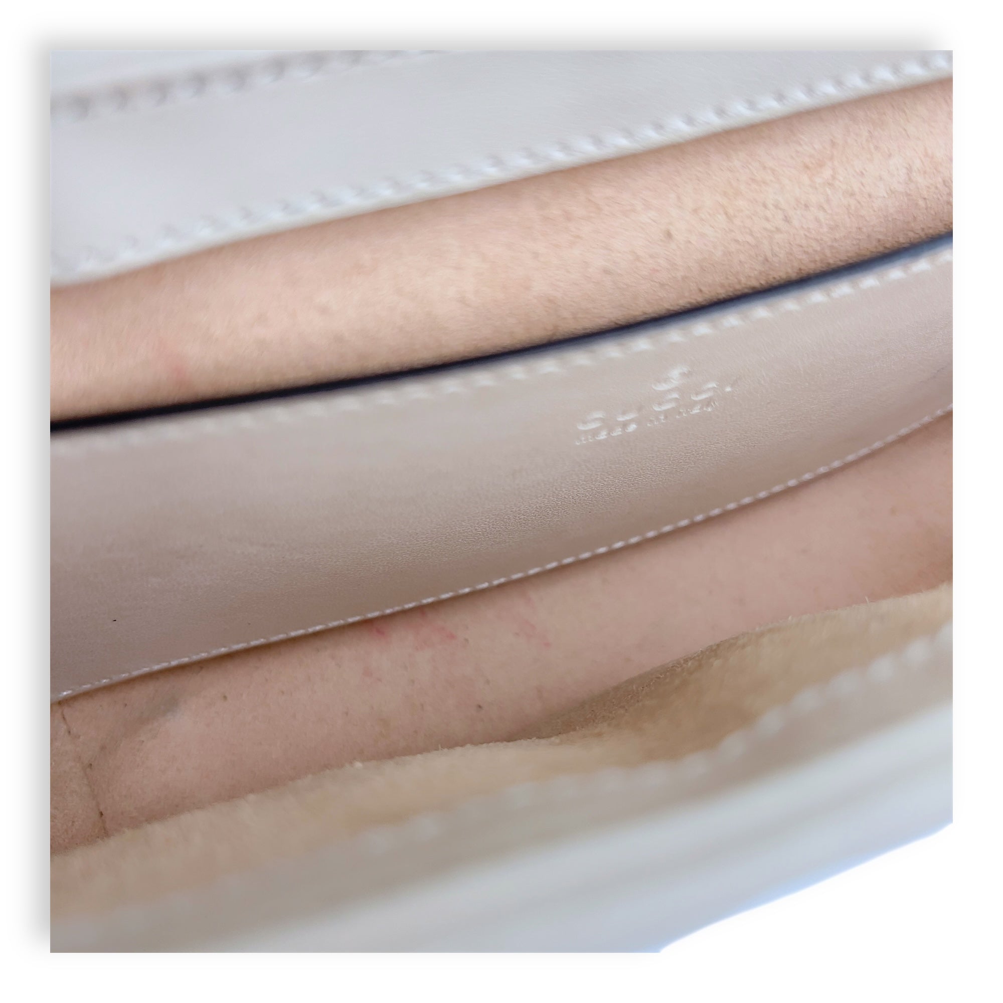 GG Marmont Mini White Shoulder Bag in Calfskin, Silver hardware