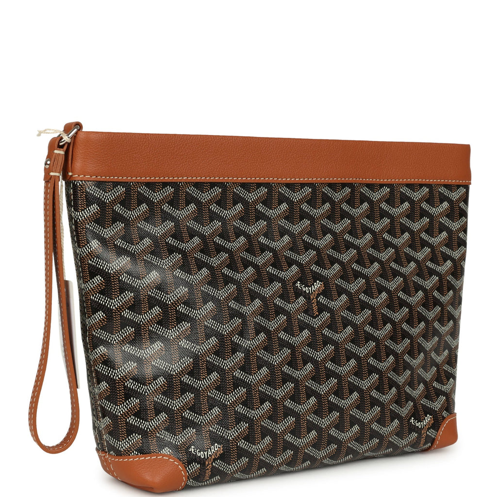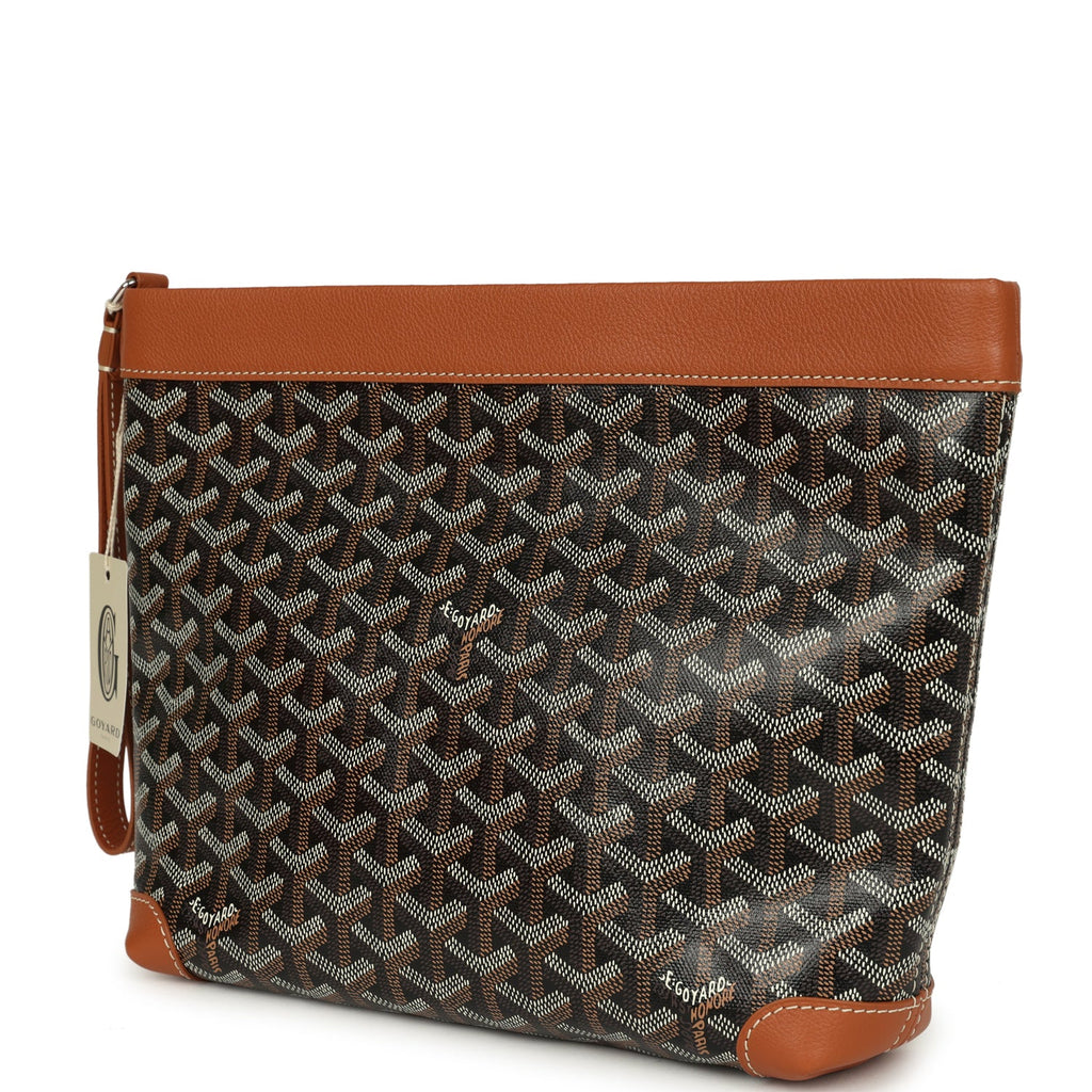 Goyard Goyardine Canvas Black and Tan Conti Pouch Palladium Hardware Shop for an authentic Goyard Conti Pouch in black and tan Goyardine with palladium hardware in new and never worn condition at Madison Avenue Couture.