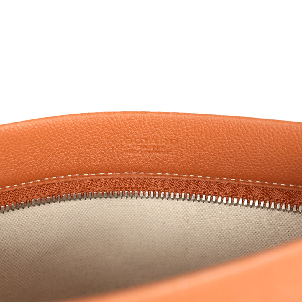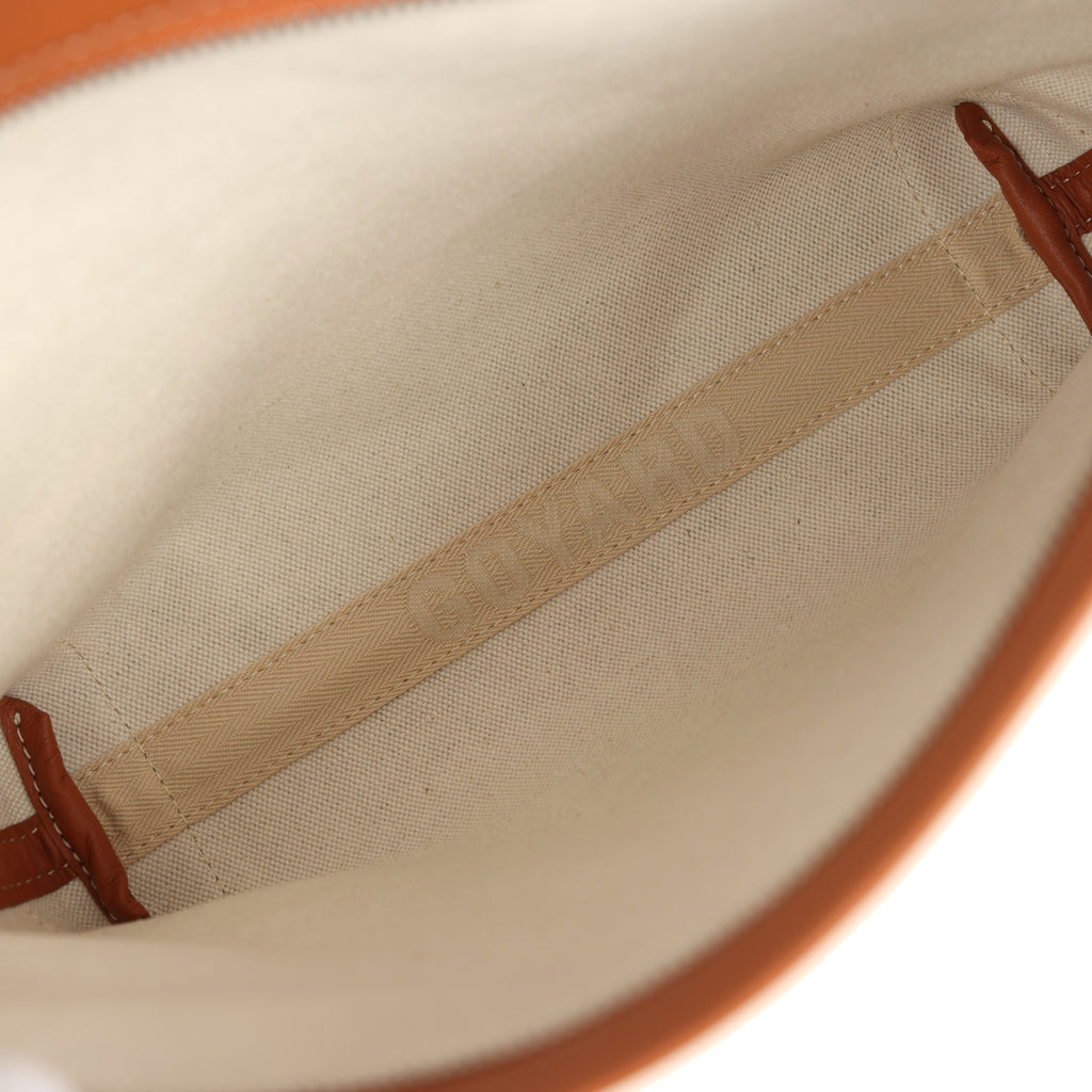 This Goyard Conti Pouch is in black Goyardine canvas and Tan Chevroches calfskin leather with palladium hardware, contrast stitching, a wristlet strap and zipper closure.The interior is lined in white canvas with no interior pockets.Origin: FranceCondition: New and never wornAccompanied by: Goyard dustbag, carebook, retail tagMeasurements: 9.5” x 8.6″ x 2.5″; 6″ wristlet strap drop