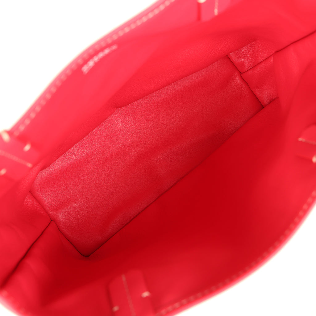 This 2025 limited edition Anjou Mini reversible tote is of Fuchsia Goyardine coated canvas leather and chevroches calfskin leather with palladium hardware, contrast stitching, Fuchsia chevroches calfskin lining and trim, and a detachable matching coin purse.Origin: FranceCondition: New and never worn (plastic on handles)Accompanied by: Dustbag, carebook, felt, detachable pouch, retail tagsMeasurements: 8″ x 8″ x 4″; 7″ shoulder strap